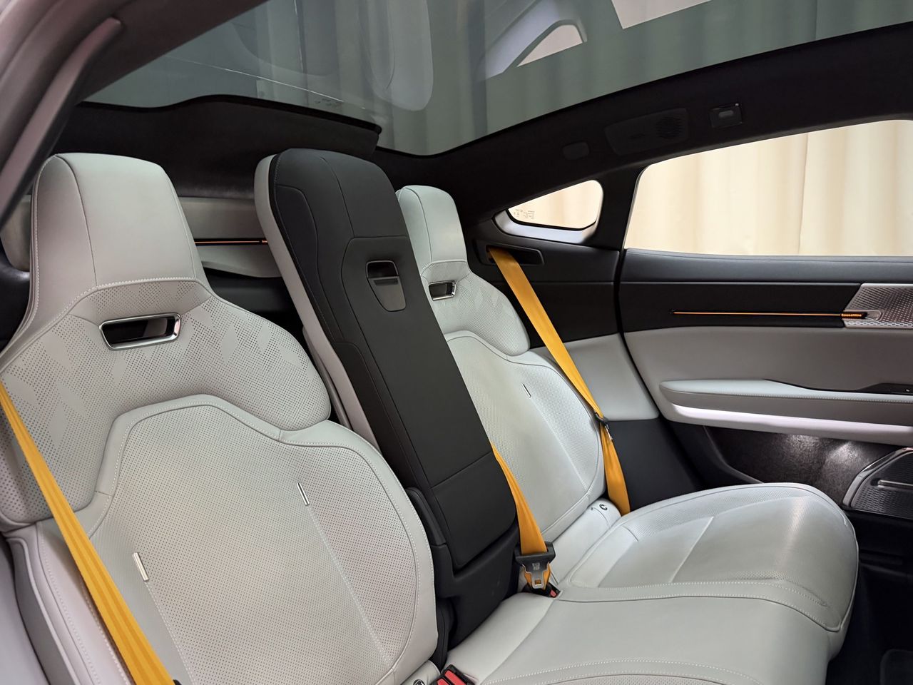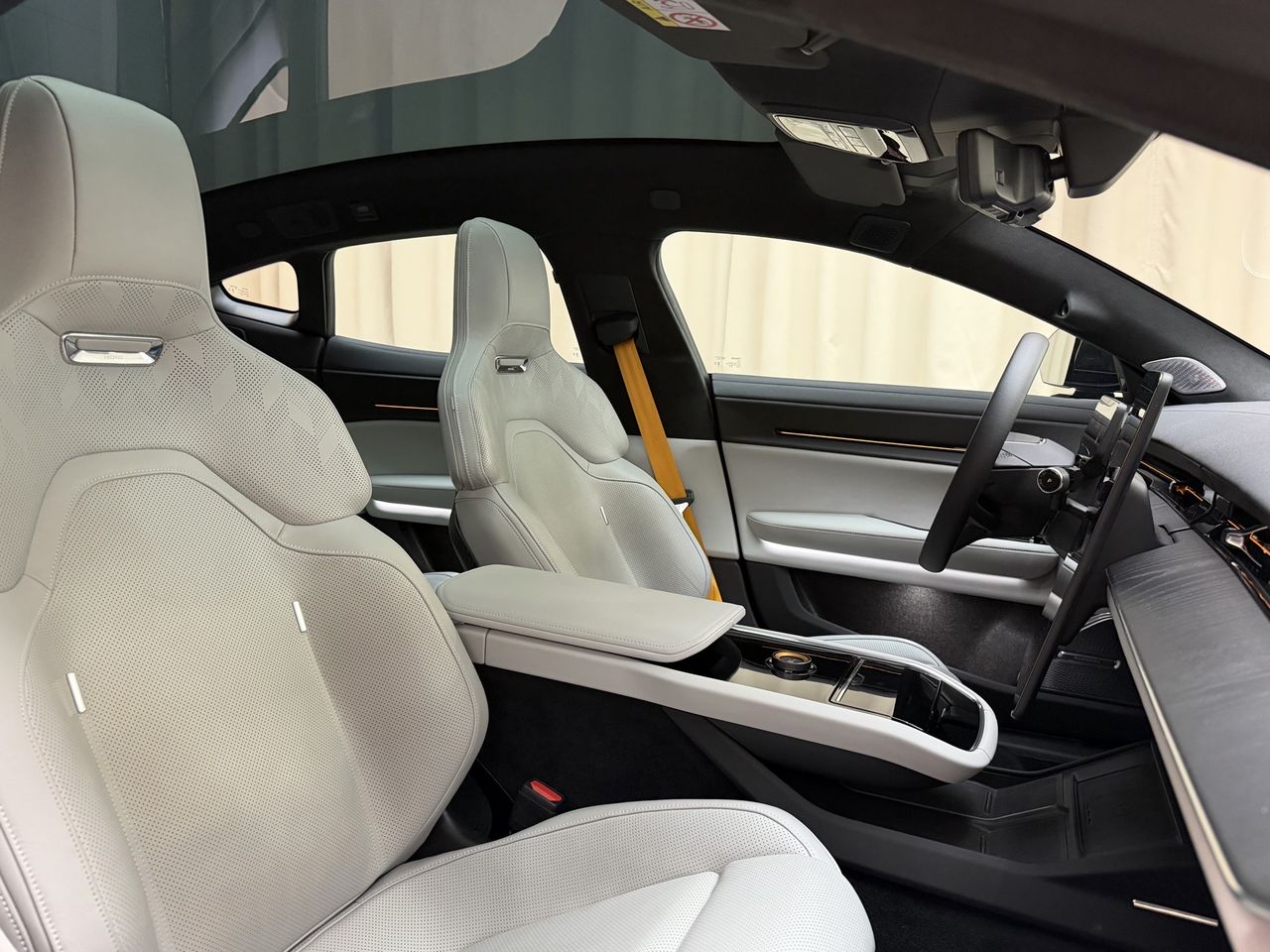 Bak har man också tappat lite edge, men det är fortfarande en mycket, mycket imponerande rumpa. Jag gillar den väldigt mycket. Öppnar man bagaget så får man plats med 365 liter. Troligen tillräckligt för fyra weekendväskor, men det är tveksamt om man får in fyra kabinväskor. Tyvärr är rätt många av litrarna under golvet, så räkna inte med att flytta med den här. Det går faktiskt att fälla baksätet 40/60, rätt smidigt. Det finns dragkrok också om man behöver åka till återvinningen med skräp. På tal om baksätet är det väldigt härligt där. Bilen är 4+1 som Polestar kallas det. Det betyder att fyra personer får plats och att det i nödfall finns plats för en till i mitten där bak. Jag fattar inte varför Polestar har gjort detta, det är verkligen ett nödsäte och med "armstödet" uppfällt ser det faktiskt rätt dumt ut. Alla fyra riktiga skolar är rätt sportiga, eller lagom sportiga. De fram har man gjort tillsammans med Recaro, minsann. I inredningen känner vi överlag igen oss från lite Polestar 4 men framförallt Polestar 3. Och därmed Volvo. Det är inte dåligt, men vissa saker hade man kunnat lägga lite mer energi på. Volymknappen i mitten är ok men kunde gott varit lite mer premium. Körlägesspaken, som även finns i Volvo EX30, känns väldigt plastig och inte alls premium. Och ratten. Herregud. Den är dålig i Polestar 4, här är den usch usch usch. Priset däremot är premium. Billigaste versionen kostar 1.345.000 kronor och just nu får man en massa paket på köpet, så det mesta ingår. Då får man 550 kW från de två motorerna. Vill man ha mer får man betala mer, för 1,6 miljoner får man Performance-versionen som bland annat levererar 650 kW, men också fränare säkerhetsbälten, fetare bromsar och annat trevligt. Dyrt, men det är dyrare att köpa Porsche Taycan. Polestar-folket vill inte peka ut en specifik konkurrent, men jag tror att man har en produkt som kan attrahera en publik. Man får rätt mycket för pengarna, trots en del inte så upphetsande detaljer.