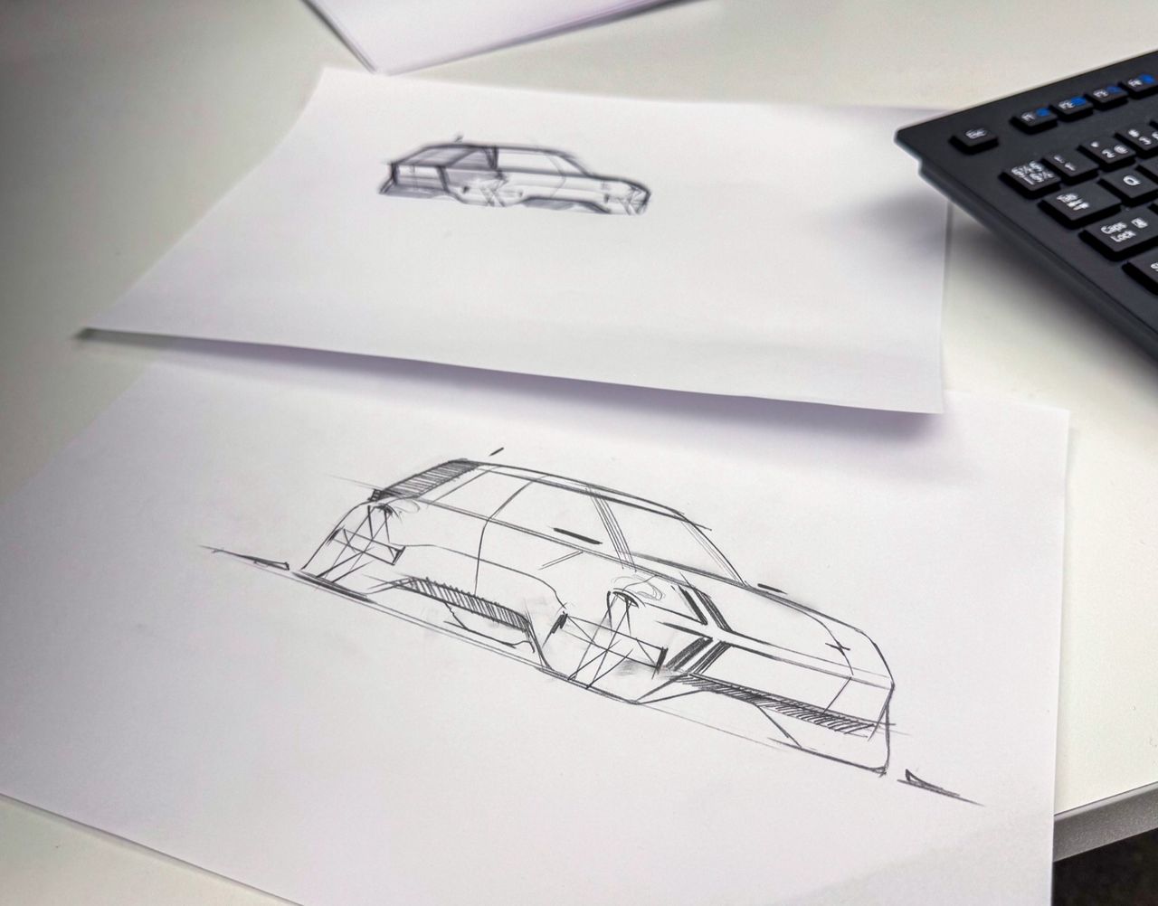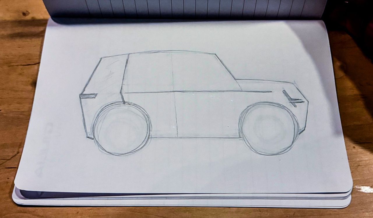Det var många, många år sedan jag skissade på bilar, men i barndomen blev det otroligt många block med bilar med stora hjul. Jag är dock inte så tredimensionell av mig, uppväxt med arkitekter, så att rita något som fungerar ur alla vinklar var inte att tänka på. Jag skissade lite idéer hemma och fick istället hjälp av en riktig bildesigner på plats hos Polestar. Fusk så det skriker om det, men vad gör man inte för att vinna? Min ytterst tvådimensionella tanke har helt ärligt väldigt mycket inspiration från nyligen släppta Rivian R3. Men det skäms jag inte för. Jag vill att Polestar ska tänka smått och jag tror verkligen att det kan vara underbart att göra något som är litet, roligt, sportigt, praktiskt och premium på en och samma gång. Tanken var att jobba med lite suvigt formspråk, inte för att göra ännu en suv utan för att få till en biffighet och kaxighet. Det här ska bli en liten bil, tänk Golf-klass, och pigg och rolig som en klassisk hot-hatch. Men för att göra något som inte är som allt annat får baken bli täckt som på en skåpbil. Party in the front, business in the back typ. Bara för att man vill ha en liten och rolig bil så ska man ju inte behöva leva med något opraktiskt. Jag, Maximilian Missoni och Jenö HajduFör att ta min ofantligt sterila skiss och göra något vettigt av den fick jag hjälp av Jenö Hajdu, till vardags designer på Polestar som hade tagit lite tid från sitt vanliga ritande för att hjälpa mig - något jag är otroligt tacksam för! Min ofantligt tradiga skiss började få liv och knubbigheten försvann snabbt. Tur det, för det som ramlade ur Jenös händer var betydligt piggare. Det är nästan lag idag när man designar bilar att fronten, sett ovanifrån, inte är helt rak utan lite vinklad. Detta är praktiskt eftersom då kan frontlamporna också synas från sidorna, vilket inte gör så mycket för funktionaliteten (de lyser ju fortfarande framåt) men det gör att sidan på bilen inte bara blir en vägg. Jag ville dock behålla boxigheten och bestämde mig för att spegla Polestars lysen på sidorna av bilen. Det är kanske inte en idé som skulle hålla hela vägen till produktion, men man måste ju tänka lite utanför boxen! En udda kombination att hämta inspiration frånBilens rumpa ska också vara väldigt boxig i sin stil och rutorna på sidorna där bak ska vara täckta, en "helt naturlig" mix av en budbil och en Audi R8. Det är dags att någon lyckas ta denna underliga kombination och gör det rätt. Mini försökte göra en modern version med sin Mini Clubvan, men det blev inte så lyckat tycker jag. Framförallt eftersom det var en efterkonstruktion, och de är sällan bra. Men gör man det från start och gör det rätt så kan det bli bra, eller vad tror ni? Nu börjar det likna något tycker jag! Vi fortsätter och boxar till bakdelen ytterligare, jag vill verkligen få till en känsla av en bil som har kombikänsla där bak och ingen coupé-känsla med sluttande tak som förstör den praktiska funktionen. För mig är det här lite av en drömbil faktiskt. En bil som känns snabb och pigg, som två personer kan köra långt i utan problem, som har ett litet men fungerande baksäte och som har ett riktigt praktiskt avslut där man får in rätt stora och boxiga saker i bagaget. Jag är otroligt tveksam om jag kommer att vinna årets tävling och helt ärligt är jag inte värd det. Men jag gillar verkligen initiativet från Polestar med att man inte bara bjuder in mig utan alla där ute att kunna förverkliga sina drömmar. Tack för att jag fick leva ut en pojkdröm och låtsas att jag är en bildesigner, om än för en dag. Vill du läsa mer om tävlingen och delta kan du göra det här. På instagram-kontot finns det också mer information att hitta.