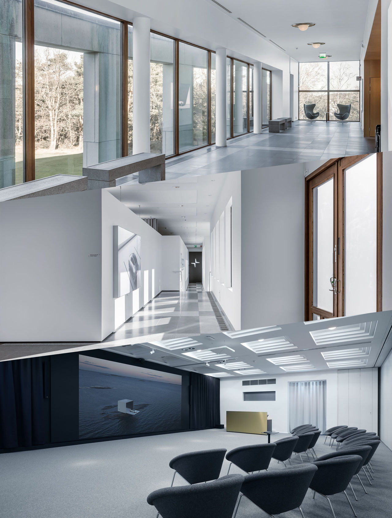 Chefsdesignern Maximilian Missoni och hans gäng har bott in sig i en riktigt klassisk lokal uppe på en kulle, bara en kort bit från Polestars huvudkontor och Volvos fabrik i Torslanda. Detta är som sagt klassisk mark, det här var kärnan i Volvo på PG Gyllenhammars tid. Bygget stod färdigt 1984 och ritades av italienaren Romaldo Giurgola och vår egen Owe Svärd. Volvo Cars försvann härifrån 1999 när fordonsdelen såldes till Ford och de sista från Volvo Bus och Volvo Trucks flyttade ut 2016. Stället har verkligen känslan av ett högkvarter. Det ligger på en kulle med utsikt inte bara över Volvo-fabriken i Torslanda utan man ser även Göteborgs vackra skärgård. Just nu sitter Polestar Design i en del av byggnaden och man är 65 personer. Har har man ett showroom som ni kan se i videon om Synergy ovan, men man får även plats att bygga lermodeller och har två VR-rum.