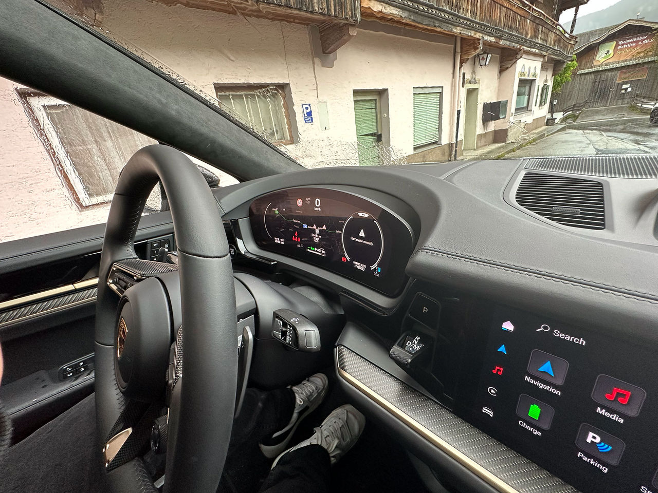Man har även lagt till en ombordladdare som klarar 11 kW, så har du en laddbox för elbil så laddar du fullt på 2,5 timmar. Det är rejält mycket mindre än tidigare så har du långt till jobbet och laddare både där och hemma kan du köra runt helt på el till vardags. Elmotorn är på 130 kW (upp från 100 kW) så räcker gott och väl i stan och lite till, tillsammans levererar paketet 346 kW och 650 Nm och 0-100 går på 4,9 sekunder. Jag provade både Cayenne S och E-hybrid och jag hade lätt valt hybriden. Den kostar mindre, skatten är obefintlig och man får det bästa av två världar. Det är sällan jag tycker det om laddhybrider, men här kanske det faktiskt funkar. I stan kan man smyga runt på el (och inte ha bensinångest) och du kommer faktiskt en bit, men växlar man till Sport-läget och säger till sportavgassystemet att göra sin sak så får man helt plötsligt en bil som låter och har sig. Vädret i Tyrolen där jag körde dessa var uselt och det regnade i princip hela tiden. En dålig kombination med slingriga alpvägar. Eftersom jag är en ansvarsfull person som tycker att det är roligt att leva blev det därför rätt stillsam körning och jag har tyvärr inte så mycket att säga om hur den här bilen fungerar när man tar ut svängarna. Jag har kört Turbo GT på bana så jag vet att även en Cayenne kan flytta på sig och verkligen hålla sig på banan trots sin vikt.