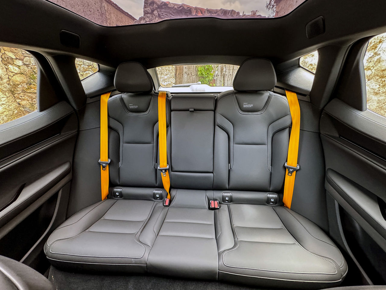På tal om ratten så är den ett rejält misslyckande. Du som vill ha fysiska knappar får leta någon annanstans – här finns det inte ens någon markering på vad tusan som är en knapp. Det är ren och skär idioti detta. Det finns olika områden till höger och vänster på ratten och det finns symboler på den lilla skärmen framför föraren som försöker berätta vad de olika delarna på ratten gör just nu. Men alltså inga på ratten.Tanken är nämligen att "knapparna" på ratten ska göra lite olika saker beroende på situation. Som ovan förare är det här fullkomligt förvirrande. Man fattar inte vad de olika delarna av rattens knapp-ytor gör, man fattar till en början inte ens vad som är knappar. De två ytorna i mitten fattar man, men är det två eller fyra knappar till höger och vänster om dessa? Är det en knapp i mitten? Som van förare är det nog lite mindre förvirrande, men det är fortfarande långt ifrån bra. Volvo EX90 verkar få markeringar på dessa ytor, jag hoppas att det kommer även hit, för det här är kass. Men helst önskar jag att man gjorde en ratt som var värdig en bil av sportig karaktär.