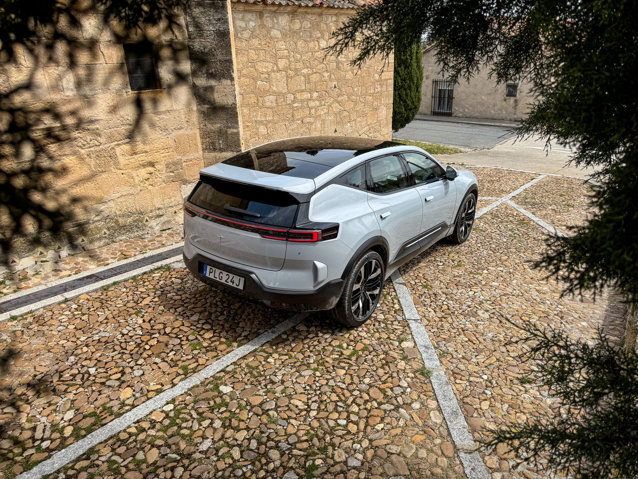 Det här är en stor och tung bil. Allt tjat från Polestars sida om att det är en suv gäller – vilket gör att jag har väldigt låga förhoppningar på hur kul denna ska vara att köra. Joakim Rydholm på Polestar som är ansvarig för chassi är en riktigt skarp kniv som Polestar har i sin låda, men inte ens han kan väl göra denna rolig? Ack så fel jag har. Och så rätt Polestar 3 är!Bilen är inte långsam, men inte heller elbilssnabb. 0 till 100 km/h går på 5 sekunder utan och 4,7 sekunder med performance-paketet. Det är inte dåligt, men det är knappast uppseendeväckande 2024. Men Polestar 3 känns kvick. Den känns liten. Den är faktiskt underbar. Leendet är stort när jag trycker på och förvåningen är otroligt stor. Den här bilen vill verkligen ha små vägar, med mycket kurvor. Det trodde jag verkligen inte. Joakim och alla andra på Polestar har gjort ett helt otroligt jobb, hatten av. Känslan är alltså mer av en liten hatchback än en suv. Vilket är helt sjukt. Anledningen till det är att man använder aktiva dämpare och något som kallas för torque-vectoring, eller vridmomentstyrning på svenska. Enkelt förklarat betyder det att man flyttar kraften inte bara mellan fram- och bakaxlar utan också mellan höger och vänster sida. Det gör att man kan trycka in bilen när det behövs, till exempel i en kurva. Och det fungerar. En så här tung bil ska liksom kännas tung i kurvorna, den ska vara på väg ut i diket om man trycker på för mycket. Men det gör den inte. Istället vill den att man ska trycka på mer, pressa den hårdare. Men när man gör det så ger den sig inte utan håller sig precis där jag vill att den ska vara. Jag trodde inte att jag skulle säga detta, men Polestar 3 är sportig. Den lever upp till varumärket. Efter en tur på Madrids landsbygd klämmer jag mig in i Madrids innerstad. Det är trångt på de små gatorna och jag är beredd på en tråkig upplevelse. Men även här känns bilen mindre än vad den är, konstigt nog. När gatan är trång så är gatan trång och de små parkeringsplatserna blir inte större på grund av vridmomentstyrningen. Men så fort det blir en lucka klipper den iväg och känns otroligt enkel att hantera. Det är förbluffande härligt. Guldiga detaljer räcker inte
