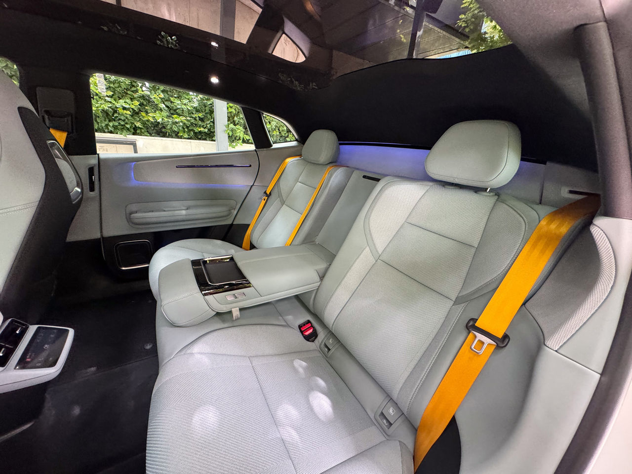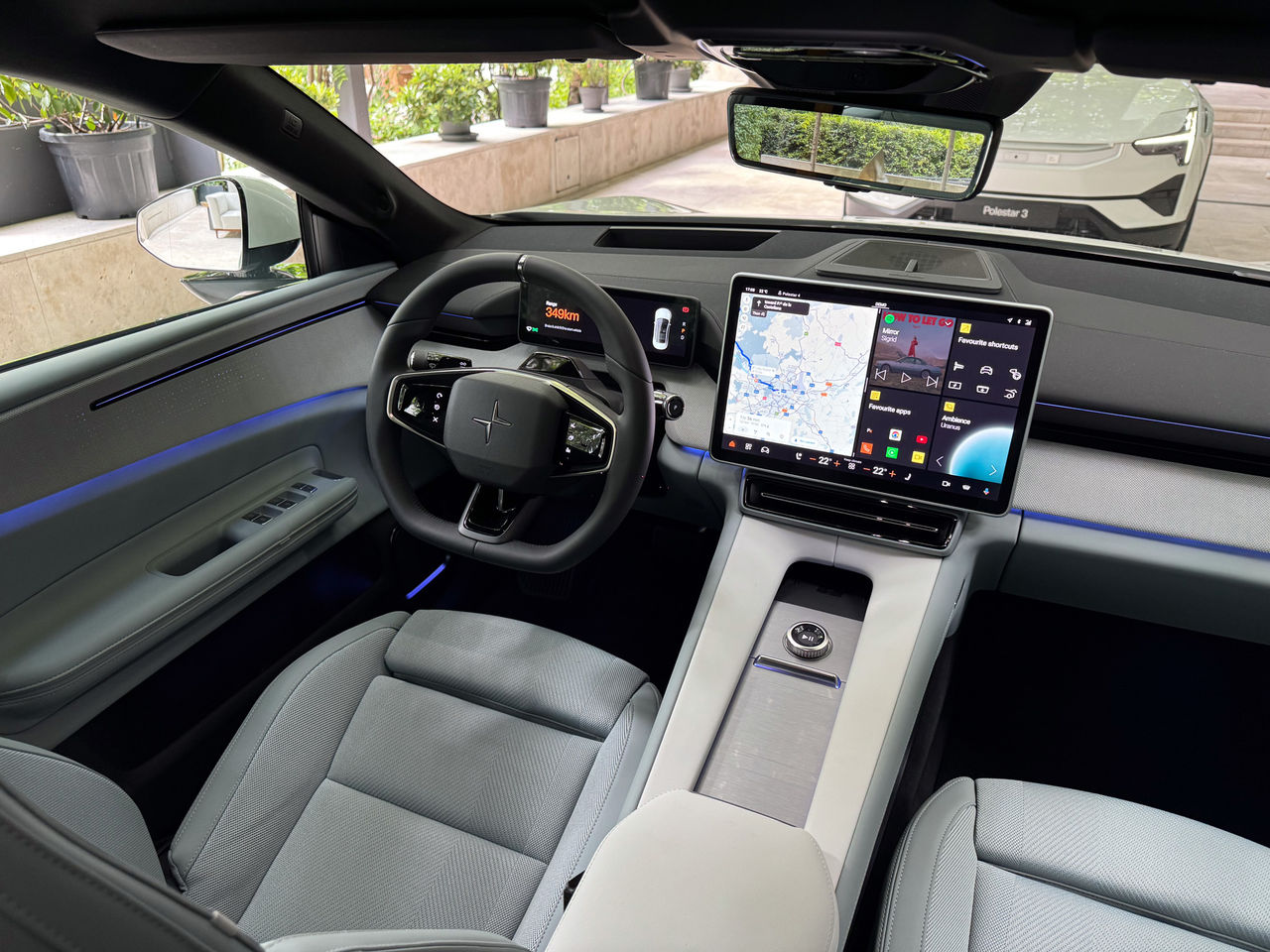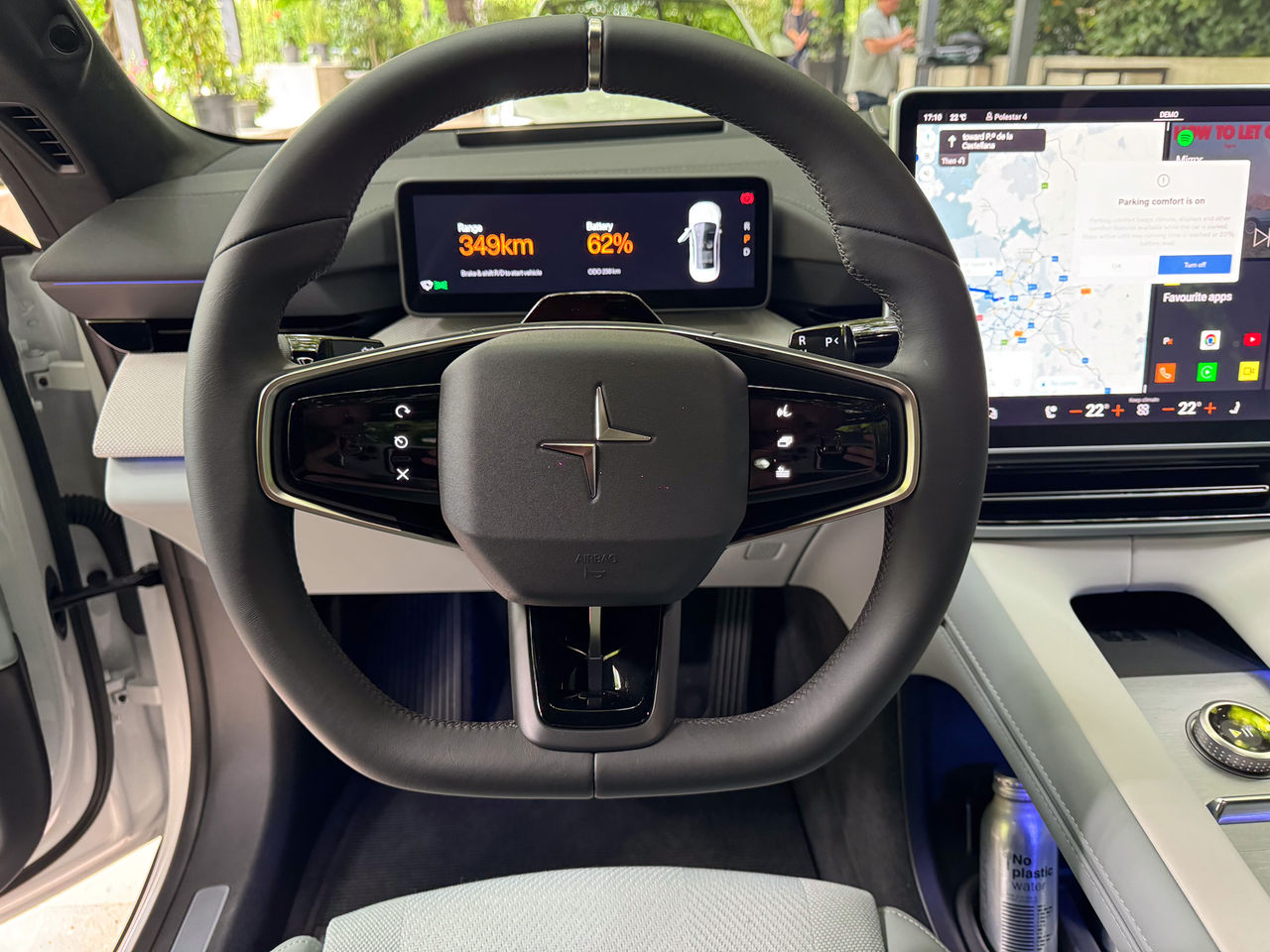 Anledningen till att man har skippat bakrutan är att man då kunnat flytta bak en balk som annars skulle ha suttit rakt över huvudet på de i baksätet. Bra tänkt, men det är ändå inte så herrans gott om utrymme för huvudet där bak. För benen är det däremot gott om plats och det känns både ombonat och lyxigt. Med Plus-paketet så får man dessutom ett baksäte som går att vinkla elektroniskt. I det paketet ingår också en liten skärm där man kan styra temperaturen där bak och se vad som spelas på stereon. Av någon anledning så har Polestar, som brukar ha magiskt bra koll på design och detaljer, inte rätt typsnitt på den här skärmen. Men det lär bara jag och andra typsnittsnördar märka av. Ombonad och fintEn annan sak som saknas är den Smart Zone som Polestar introducerade med Polestar 3 och sedan la till på Polestar 2. Det är en liten yta i fronten där man har samlat, och ramat in, smart teknik. Av någon anledning har man valt att inte göra det på fyran, mycket oklart varför. Det är ju mest en branding-sak, så ingen större skada skedd, men jag tycker det är underligt. Designen på fyran är det inget fel på alls, även om jag kanske hade önskat att man gjort den lite fetare i sin framtoning. Lite mer av de skarpa vinklar som finns på kommande Polestar 5. Men det är sannerligen ingen ful bil, från framsidan. Rumpan med den saknade bakrutan är kanske inte så lyckad i vitt och jag tycker nog att man skulle kunna ha förlängt det svarta taket en bit till. Mycket plåt blir det...Klart roligaste färgen är den guldiga, inte många lär våga beställa den men till alla ni som gör det - ni har min respekt! Allt är inte guld som glimrar Flyttar vi oss in i förarsätet så är det rent och avskalat. Vi har precis som i Polestar 3 en ratt med dåliga knappar, men här är de dåliga på ett annat sätt. Fascinerande faktiskt, att man kan misslyckas två gånger. Polestar 4 har fördelen att man kan se några symboler på ratten och inte är helt i blindo och det är ändå möjligt att lära sig vad som händer när man trycker på de omarkerade kontrollerna. Men bra är det inte. Framför föraren sitter precis som i Polestar 3 en liten skärm som har det viktigaste, inklusive karta. Överlag känns det väldigt mycket Polestar på ett bra sätt. Några detaljer skulle man kunna ändra, bland annat så syns ikonen för den adaptiva farthållaren och Pilot Assist inte när den är avstängd, vilket den gör på Polestar 3. Att kunna få bekräftat att något är av är också bra, men det är bara mjukvara och går att ändra. Den stora skärmen är på Polestar 4 i vertikalt läge och det är nog bättre enligt mig. Upplägget är lite annorlunda mot Polestar 3 som har en stående skärm, men principen är på många sätt densamma. Först har man lite snabbkommandon och genvägar och sedan finns en tydlig meny som tar en runt i bilen. Hemknapp, appar och ventilation finns i botten liksom Google Assistant. Systemet bygger på Google Automotive, vilket är bra. I övrigt är det inte mycket att säga om inredningen. Det är avskalat, förutom den gigantiska saken i mitten. Den ska ge sportbilskänsla, men skulle gott kunna vara mindre, men det är bara min personliga åsikt. Men hur är den att köra då? Inte alls lika härlig som trean. Tyvärr. Men frågan är om det gör så mycket. Om det inte var en Polestar-logga där fram och man inte tryckte så hårt på sportigheten hade jag nog tänkt lite annorlunda. För det är en trevlig bil att köra rakt fram med. Bekväm och härlig. Men med förutsättningarna att det är en prestanda-suv blir betyget ett annat, det lever den inte upp till i min bok.Jag börjar köra versionen som har dubbla motorer, 400 kW och klockar 0-100 km/h på 3,8 sekunder. Denna har också aktiva dämpare. Låter ju väldigt bra på pappret. Det är det inte. I de kurvor som Polestar 3 överraskar med att vara exakt och ligga precis där man vill ha den så förvånar Polestar 4 med att vilja trycka ut bilen i kurvorna. Hela bilen känns faktiskt tung och väldigt osportig. De härligaste sportbilarna är de som liksom tigger om att man ska köra snabbare, som visar att allt är lugnt och att det finns utrymme för att ta i lite mer. Här är känslan precis tvärtom. Skärm i baksätet är trevligt, men varför är det fel typsnitt?Efter halva tiden byter jag till den bakhjulsdrivna varianten med 200 kW som gör 0-100 km/h på 7,1 sekunder. Denna har vanliga dämpare och är faktiskt roligare att köra. Den är mer där jag vill ha den i kurvorna, även om det inte är på alls samma nivå som i Polestar 3. Trots att den inte alls har prestanda för att vara sportig så känns den alltså bättre. Som ni hör är jag lite besviken. Det känns som att Polestar-gänget har kunnat och valt att lägga en herrans massa tid på Polestar 3 men knappt fått, eller velat, röra Polestar 4. Nu var det ett tag sedan jag körde Zeekr 001, men vad jag minns var den rätt rolig och trevlig i kurvorna, till och med på bana. Så det är lite förvånande detta. Kanske är Polestar 4 skapad för Kina, kanske ska den vara så här. Och som jag sa tidigare, det hade varit helt ok om det man sålde in var en bekväm och chill bil. Men Polestars varumärke är inte att vara bekväm och chill. Polestar 3 må kanske vara en kassako för företaget, om den säljer. Men det är Polestar 4 som ska bli storsäljaren. Tyvärr tror jag att Polestar kommer att få det kämpigt att sälja den här för, relativt, dyra pengar. Man ligger i en klass där köparna har krav och förväntningar, och jag är inte övertygad om att man når upp till det.