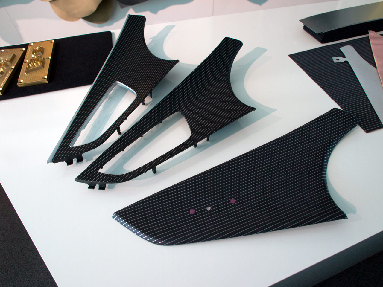 En sak som jag gillar med det som Audi har gjort på sistone är att de har börjat med trä i bilarna som inte är lackade 145 gånger. För några år sedan stod det ibland i pressreleaserna att den och den bilen var sååå exklusiv eftersom den hade trä i bilen som var lackat just 145 gånger, eller kanske inte just 145 gånger men ni fattar. Audis trä är alltså inte lackat, och det är ibland kritstrecksrandigt. Men hur tusan gör de det? Man börjar med att ta svart trä och skiva det i tunna, tunna skivor. Sedan tar man aluminium och fixar lika tunna skivor av det. Man tar skivorna och limmar ihop dem till block, större än detta exempel så klart. Utifrån blocken tar man sedan och hyvlar ut tunn fanér. Detta tryckpressar man sedan så att det får den form man vill ha, fäster detta på en plastram och sätter sist dit aluminiumdelarna. Ja, ni ser hur det ser ut ovan och nedan.Resultatet då? Allt handlar ju om tycke och smak men jag gillar verkligen att man har en känsla av trä när man tar på det, på något sätt gör sättet man tar fram fanéren på att det inte behövs lackas vilket gillas! Och eftersom ränderna är "fejkade" så kan man få till riktigt snygga linjer i inredningen.