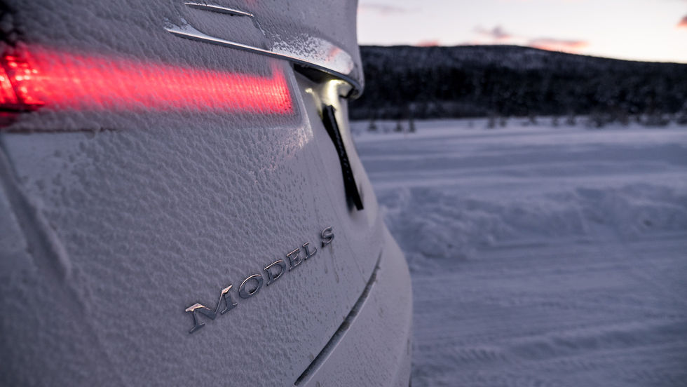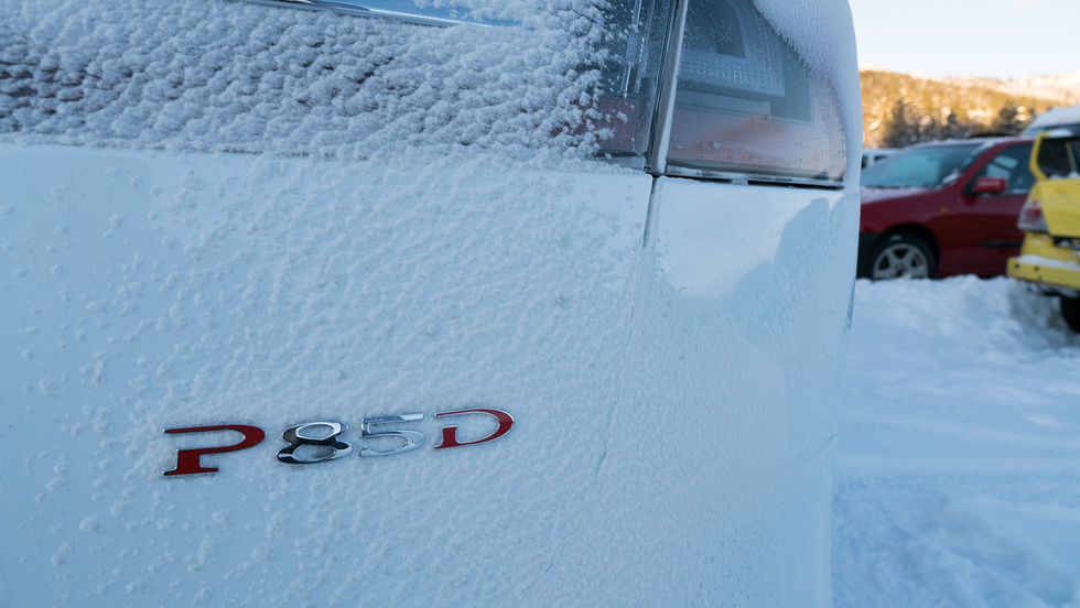 En sak man måste tänka på när det kommer till elbilar är att det inte finns några naturliga värmekällor, som en förbränningsmotor exempelvis. Det innebär att man måste producera värme och inte bara kan ta denna från motorn. En dag när det är 25 minus ute vill man ha sätesvärme och att värmen i kupén är på rätt sida om 20-strecket. Detta tar ju såklart kraft från batterierna och försämrar räckvidden, så samtidigt som man vill komma så långt som möjligt vill man se till att inte frysa stjärten av sig under tiden. Fram i bilen är det helt okej värme men den är faktiskt lite sämre där bak. Har man inte bockat i vinterpaketet får man heller ingen sätesvärme i baksätet, något som inte är helt kul när sitsen är i skinn. På tal om baksätet - detta var första gången jag satt i det och det var ingen trevlig upplevelse. Trots att bilen är stor på utsidan är baksätet inget att hurra över. Ryggen är väldigt upprätt, golvet för högt och dynan är alldeles för kort - nästan inget lårbensstöd och knäna högt upp i luften. Det var på riktigt obekvämt att åka de milen jag gjorde, och då var vi tre normalstora vuxna i bilen som satt som man "ska" göra. Bävar för hur baksätet i Model 3 kommer att bli.Efter några mils körande fick klimatanläggningen för sig att leva loppan, och trots att vi ställt in hur vi ville ha det i bilen höll den hela tiden på att ställa om sig. Detta visade sig vara en del av energibesparingsfunktionen som man kan stänga av om man ville, dock var det inte helt uppenbart var man gjorde det i menyerna. Kylan och den långa körningen tog ju såklart på räckvidden så ungefär 45 minuter innan vi var framme vid vårt mål var vi tvungna att stanna på en Supercharger-station för att tanka el. Det innebar ett stopp på minst 30 minuter så en kopp varm choklad på fiket som låg alldeles bredvid blev en självklarhet. Bilen stod på laddning när vi hämtade upp den på flygplatsen och när vi stannade vid laddstationen hade vi kört 18,4 mil och förbrukat 51,8 kWh. Vi hade ungefär tio mil kvar i ”tanken” och efter laddningen hade vi fått ytterligare 20 mil.Efter en kort genomgång på hotellet blev vi tilldelade varsin co-driver som skulle sitta med under körningen på isen. Vi hoppade då in i den mer prestandafokuserade versionen P 85D och styrde mot sjön som ligger vid den gamla flygplatsen Dagali. Här hade tre stycken olika stationer plogats upp - en lite längre slingrig bana, en accelerationssträcka och en konbana. Vi började på den utstakade banan där vi fick köra fritt med bara lite tips från co-drivern. Det finns ingen kardanaxel i Model S utan det sitter en elmotor på bakaxeln och en på framaxeln. Den där bak är den som funnits sedan introduktionen av modellen medan den där fram är en uppdaterad mer slimmad motor. Motorerna jobbar tillsammans via signaler och skickar hela tiden information fram och tillbaka om vilken som ska ge kraft var och hur. En motor kan inte helt och hållet ta över all kraft utan båda två är alltid igång. Fördelen med att ha motorerna såpass nära hjulen är såklart att det inte blir någon förlust i drivlinan, det är ingen kardan som via en växellåda ska gå via en bakaxel som i sin tur ska skicka vidare kraften ut till hjulen. Detta gör att effekten kommer precist och direkt så fort man trycker på gaspedalen.Säkerheten först tycker Tesla så att koppla ur några antisladdsystem och liknande är ajabaja, eller det går men väldigt lite. I inställningarna kan man stänga av antispinn, men det fungerar endast i hastigheter upp till 60 km/h - sen kopplas det automatiskt in igen. Man har valt att tillåta detta för att ibland kanske man helt enkelt vill att ett hjul ska spinna, om man exempelvis har kört fast och systemet stjälper istället för hjälper. Jag testade att köra med systemet urkopplat men det går väldigt fort att komma upp till 60 km/h. Det gick ändå att känna att det då tillät lite mer sladd men att det fortfarande jobbar på högvarv för att du ska hålla dig på vägen. Huvuddelen av körningen kördes med systemet helt inkopplat och då märker man att den här bilen verkligen inte vill att du ska krascha. Till en början tog jag det lugnt för att känna på grejerna men efter att ha blivit någorlunda varm i kläderna gasades det på lite mer - det är ju bara snö på sidorna så åker man av är det inte mer än att dra loss bilen och skämmas lite. Nu märkte man direkt att det går att köra väldigt fort. Vi rullade på vanliga dubbdäck och dubbarna letade sig ner i isen på ett oväntat bra sätt. Den bakre motorn skottar på som alltid men oj vad man märker att den främre hjälper till. Antispinnsystemet dödar bilen rejält om man provocerar tillräckligt mycket och bitvis kändes det som att vi stod nästan still, men direkt när systemen känner av att det är fritt fram att köra vidare biter sig framhjulen fast och bara skickar iväg bilen. Bilen överstyr för det mesta och det är alltid mest kraft som kommer till bakhjulen. Körningen känns väldigt stabil och vid minsta antydan till att baken börjar komma när man kör i böjarna griper fronten in och stabiliserar upp. Resultatet blir att man känner sig trygg, även fast man pressar på lite. Vill man sladda med en Tesla får man väl helt enkelt köpa sig en Model S som enbart är bakhjulsdriven.Det som jag tyckte skiljde sig mest från att köra en traditionell bil med fyrhjulsdrift var att man kom iväg så mycket snabbare efter att ha plogat runt lite. Började man kasa i en kurva och bilen tog ner farten, var man väldigt snabbt på banan igen och iväg. Det finns liksom ingen fördröjning i systemet, att motorn behöver mer varv eller att man själv måste kugga ner några växlar för att få lite bättre drag. Här var det bara att styra och gasa, mycket av bromsningen stod nämligen bromskraftsåtervinningen för. Det v