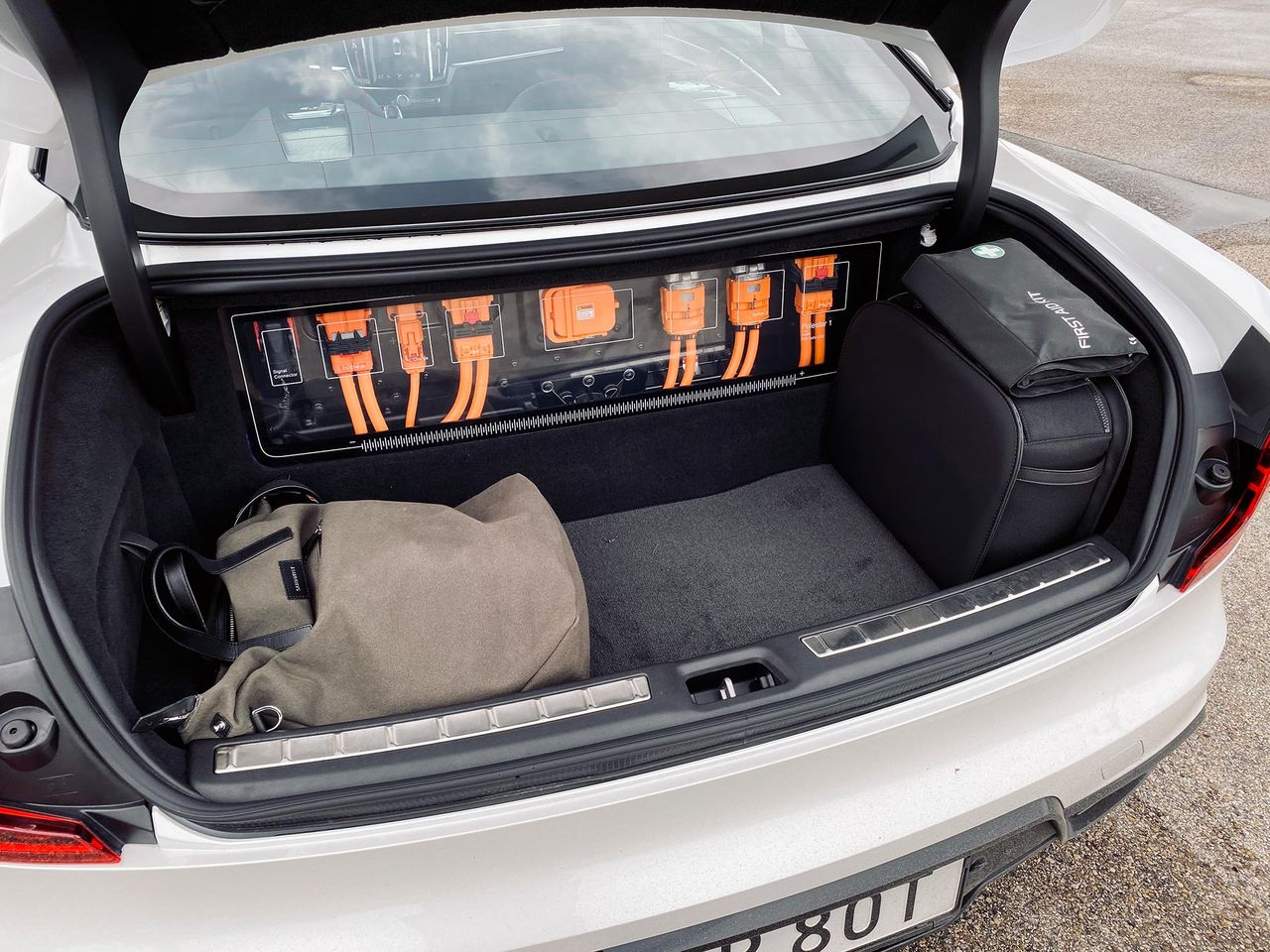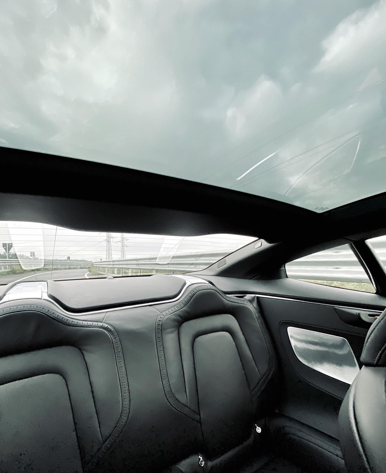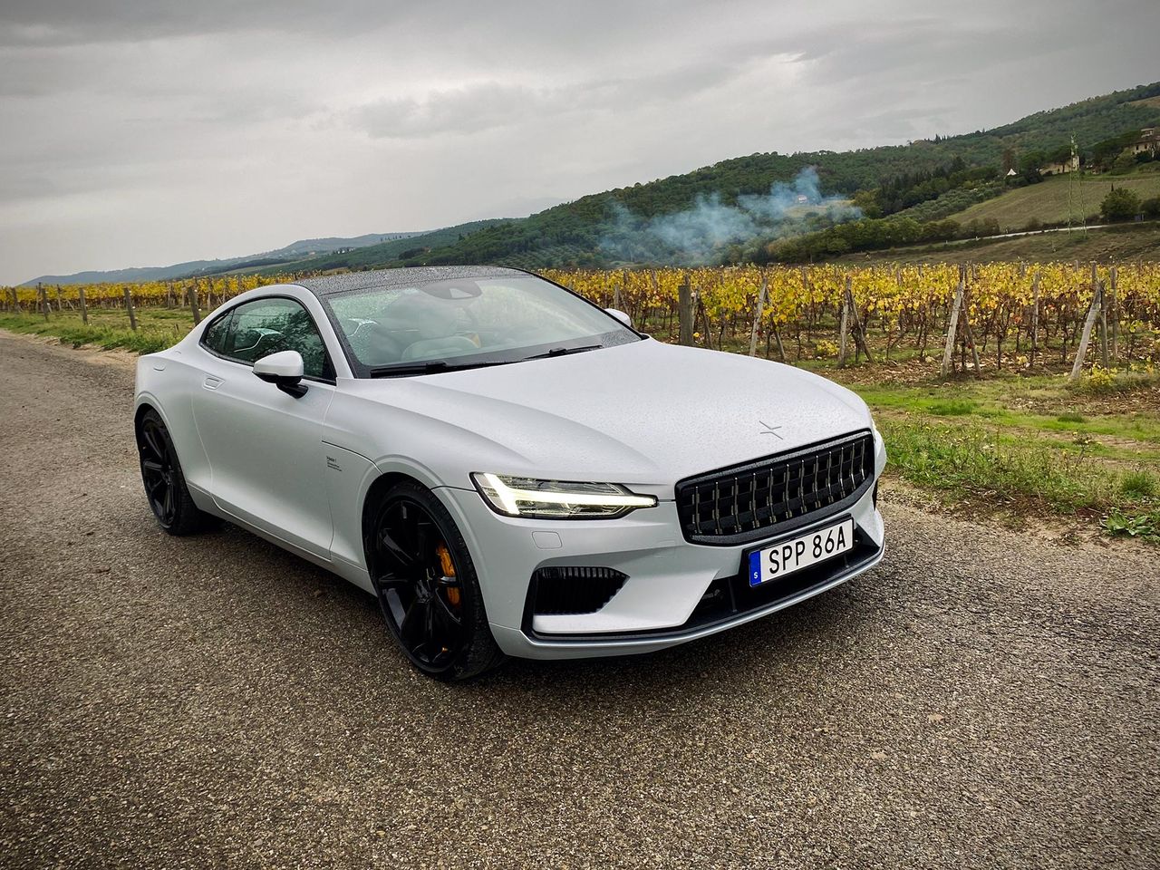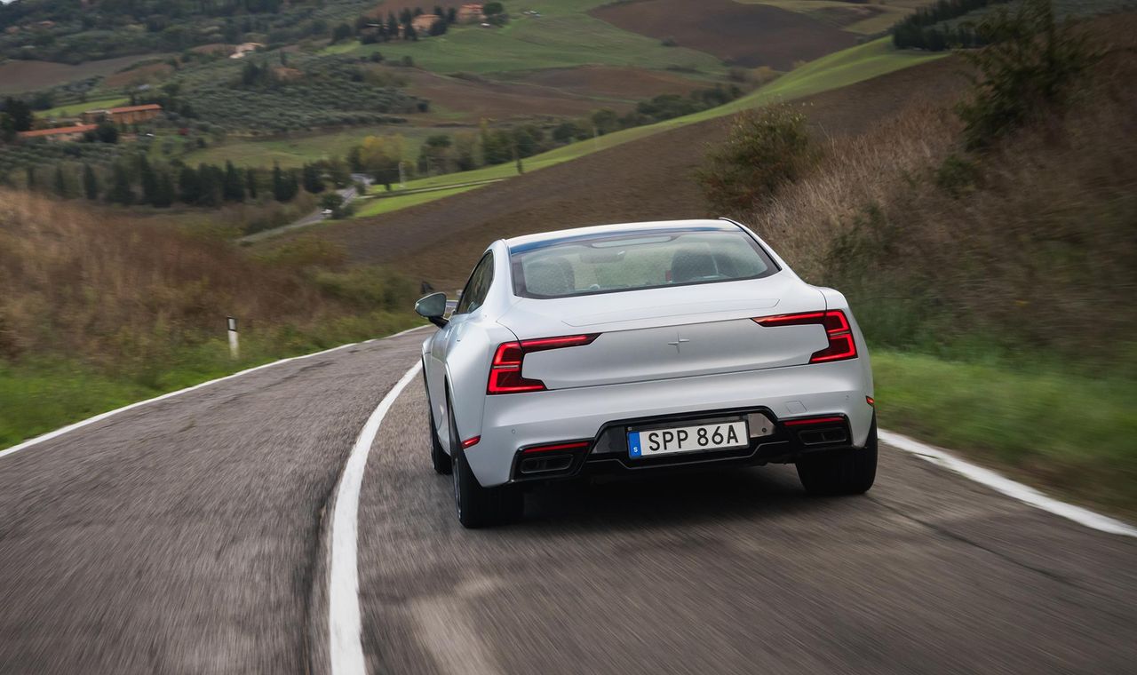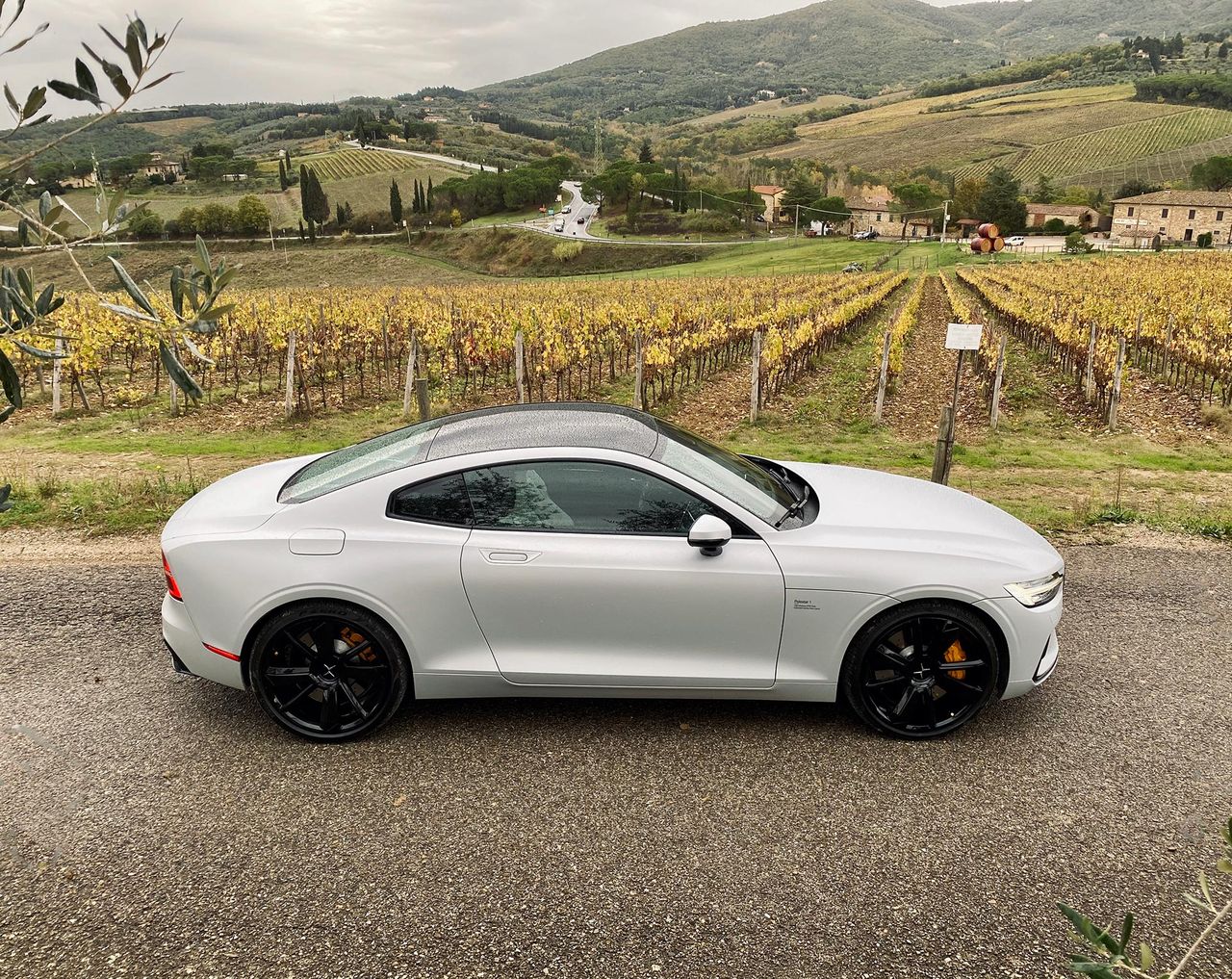 Dämparna kommer från Öhlins och är inställbara, manuellt. Två av rattarna sitter i hjulhusen bak och två under motorhuven fram. Gissningsvis kommer inte så många att pilla på dem varje dag, men det är en rolig detalj av Polestar att lyfta fram. Och dämparna fungerar verkligen bra, bilen är så klart inte mjuk som en S-klass men lyckas vara sportig utan att vara obekväm. En sak som jag verkligen gillar på de små vägarna är att det finns ett drive-läge och ett brake-läge. I det senare så bromsas bilen av generatorn när jag släpper på pedalen så att jag får tillbaka lite el i batteriet. Det betyder att om jag kör rimligt och kurvan inte är så snäv så släpper jag bara på gaspedalen, bilen bromsas upp och jag kommer igenom kurvan med lite mer juice i batteriet. Det här är absolut inte något Polestar-unikt, men det fungerar bra och blir snabbt en favorit. De små vägarna tar slut och jag hittar upp på motorvägen. Här kommer den här bilen verkligen till sin rätt, det är ju ändå en GT-vagn. Jag växlar på den italienska motorvägen mellan hybrid och power och fastnar till slut för hybridläget. Jag vill få tillbaka kräm i batteriet innan jag kommer in till stan igen och kraften finns där ändå om det stannar av och sedan öppnar upp igen. De där 2,3 sekundrarna mellan 80 och 120 tror jag på och det är en fröjd att fastna bakom någon långsam, vänta på att det blir fritt till vänster, byta fil och köra på. Det känns lite som att jag kan ligga och köra hur länge som helst, precis den känsla man vill ha i en GT-bil.