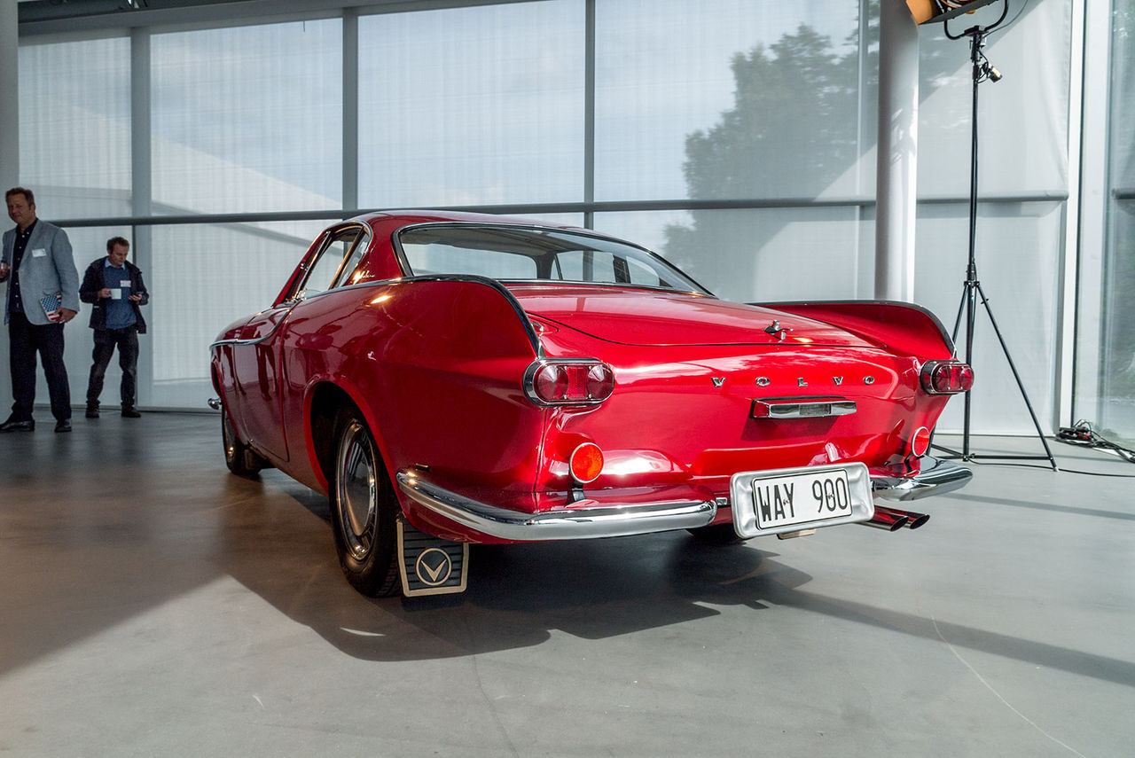 Rumpan är kraftfull och lysena är perfekta här, till skillnad på S90. Linjen som börjar vid det infällda handtaget, fortsätter över tanklocket, vidare till baklyktan och som vänder av tvärt ner för att sluta med en avbockning mot hjulet är smått genialisk. Det är i den här som arvet till P1800 främst sitter, men det är också här som jag tycker att attityden och den moderna egenheten sitter. Det är så här man använder historia på ett bra sätt.