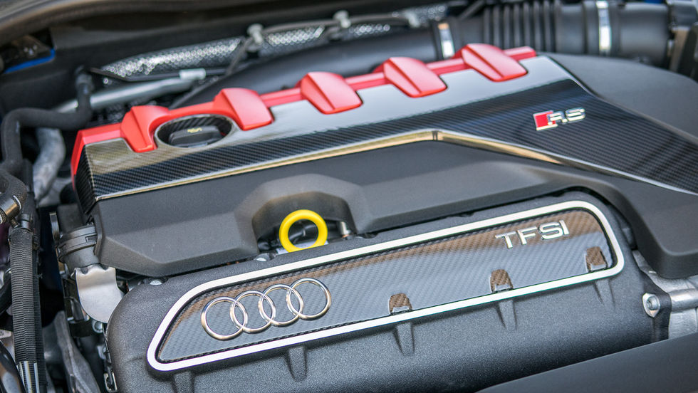 Audis lilla sportiga modell TT kommer nog tyvärr alltid att mobbas på något vis. Antingen är det en tjejbil eller en frisörbil. Audi har verkligen försökt att sudda bort detta genom att presentera den i RS-utförande. Första gången var i generation två 2009 och då fick bilen den härliga femcylindriga maskinen på 2,5 liter. 340 hästar och fyrhjulsdrift skulle väl kunna få tyst på några i alla fall. 2012 var det dags för en liten uppdatering i form av Plus-versionen som fick ytterligare 20 hästar och lite annat godis. Sakta men säkert började TT RS bli en riktigt grym prestandabil med både effekt och fartresurser så att det räckte. 2014 presenterades generation tre och i våras rullade man ut nya TT RS. Effekten är nu hela 400 hästar och coupén tar sig från stillastående till 100 km/h på bara 3,7 sekunder. Vet ni vilken annan bil som också gör det? Jo, förra generationen R8 - supersportbilen med V10:a och 525 hästar. TT RS har hälften så stor motor och 125 hästar färre, men väger ju såklart inte heller lika mycket som sin storebror. Siffran är ändå sjukt imponerande. Jag åkte till racerbanan Jarama för att testa nyheten, och oj vad mycket DNA från R8 Audi faktiskt har kokat ner i den här. TT RS har på riktigt gått från att ha varit en helt okej halvsportig kärra till en liten R8:a. Effekten är brutal, prestandan otrolig och ljudet är fantastiskt! Den låter till och med nästan som sin storebror, vilket är smått bisarrt.
