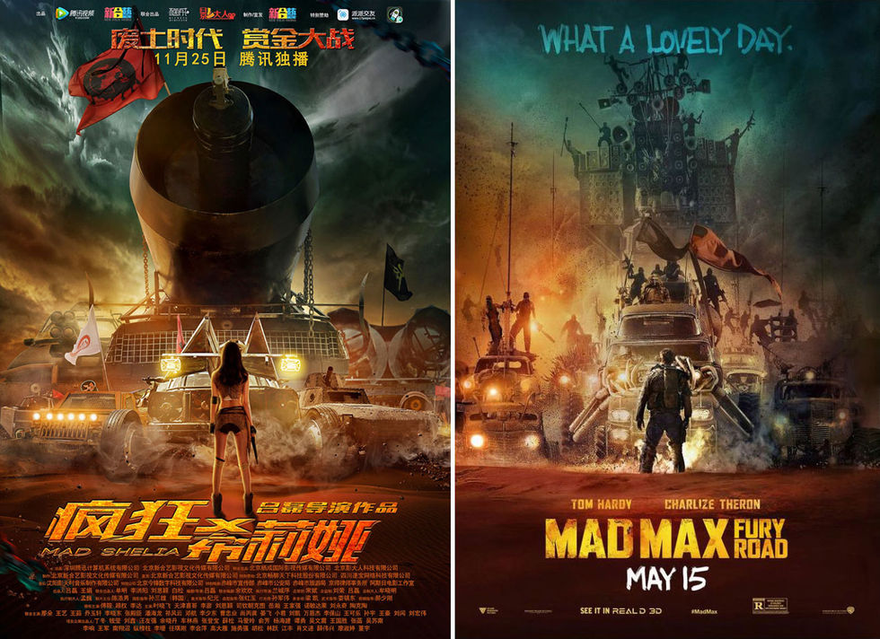 Här är trailern till den kinesiska filmen Mad Shelia som mer eller mindre verkar vara en kinesisk version av den senaste Mad Max-filmen Mad Max: Fury Road. Budgetmässigt spelar antagligen de båda filmerna dock inte i riktigt i samma divison.Tar man sig en titt på filmaffischen för Mad Shelia så påminner väl även den en del om filmaffischen för Mad Max:Fury Road. Se jämförelse nedan.