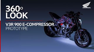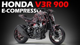 Honda visar nu upp den nya prototyp-motorcykeln V3R 900 E-Compressor och som ni hör på namnet så har den en eldriven kompressor under skalet. Honda säger att det är världens första elstyrda kompressor för motorcyklar. Fördelen med detta är att du kan få en extra knuff oavsett varvtal. Den sitter ovanpå motorn som är en kompakt vattenkyld trecylindrig maskin på 900 kubik. Kompressorn hjälper till att ge ordentligt vrid redan från låga varv och ska göra att motorn känns betydligt större än vad den är.Hojen benämns som sagt som en prototyp men den ser väldigt färdig ut och bli inte förvånade om den här inom kort presenteras i produktionsutförande. Motorn visade Honda faktiskt upp förra året, men då bara i en ram och det är först nu man presenterar hela hojen.