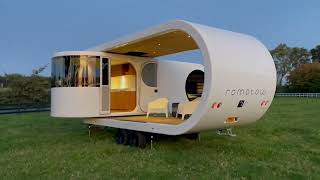 Det börjar bli dags att damma av dragkroken efter vintern och på den hänga en vagn som man drar till närmaste camping. Om du inte har någon kan du nu lägga en beställning på Romotows modell T8. Den består av två delar och när man har parkerat kan man svänga ut "skalet" runt vagnen som då blir en härlig altan att chilla på. Vagnen visades upp som prototyp för fem år sedan och nu har alltså tillverkningen dragit igång. Designen står arkitekturfirman W2 för och på prislappen står det från 268.000 dollar. Tillverkningen sker på Nya Zeeland.