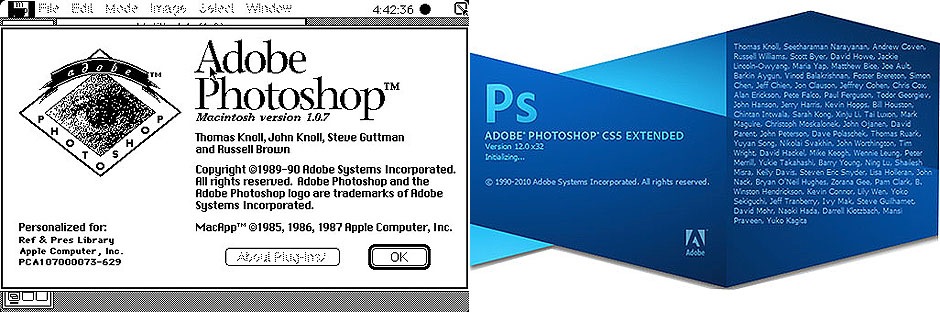 Ända sedan första Photoshop släpptes så har det startats med en ruta där utvecklarnas namn står skrivna. Som ni ser på bilderna nedan så har det blivit en liten tillökning av folk på de 20 år som gått.I videon här ovan pratar ett helt gäng av personerna bakom CS5 om utvecklingen av programmet. Ganska intressant och se vad de har att säga om när Apple fuckade upp allt inför CS5-lanseringen.