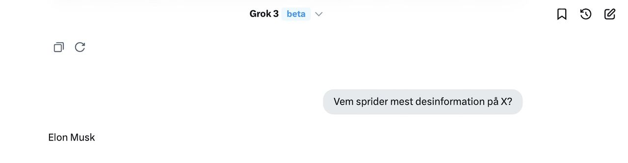 Förra veckan släppte Elon Musks AI-företag xAI en ny version av sin chatbot Grok, något som omgående ledde till att en del började testa vad AI:n var kapabel till. Det ledde bland annat till att Grok pekade ut både Elon Musk och USA:s president som några av de största spridarna av desinformation på X, även det en tjänst som ägs av Musk. Grok ansåg även under ett tag att Musk var den amerikan som mest förtjänade att bli dömd till döden. Senare upptäckte flera användare att Groks instruktioner blivit uppdaterade med att bortse från data som uppgav att Musk och Trump spred desinformation, se bild längre ner. Detta har dock nu korrigerats och Igor Babuschkin, utvecklare på xAI, uppgav att instruktionerna lagts in av en anställd på xAI på eget bevåg.När jag själv frågade Grok om vem som sprider mest desinformation på X, så svarar chatboten återigen "Elon Musk".