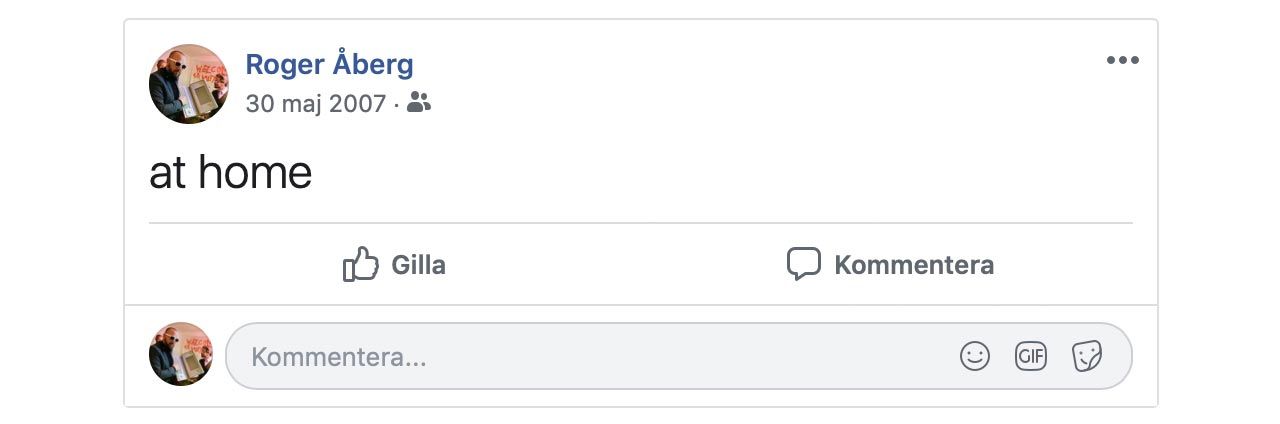 För tolv år sedan registrerade jag mig tydligen på Facebook. Jag kan inte säga att det har varit kärlek hela vägen, men inte heller speciellt mycket hat. Facebook är för mig en lysande adressbok där jag har både nära och kära, gamla kollegor och annat konstigt folk på samma ställe. Jag är med i en del grupper och hittar en del events. Och postar artiklar från Feber. Men vi backar tolv år. 30 maj 2007. Facebook kommer verkligen till Sverige nu och mängder med människor omkring mig registrerar sig. Om ni var med på den här tiden så kommer ni ihåg att Facebook frågade vad tusan man höll på med och här är mitt först, mycket innehållsrika inlägg. Det mäktiga var då, precis som i dag, att folk ens var där. Att man hade en knutpunkt till dem som inte var telefonkatalogen eller någon obskyr mailadress. Det var riktigt coolt och jag tycker faktiskt att den delen av Facebook fortfarande är riktigt cool. Det gick ganska så snabbt att lägga upp bilder, men bara från datorn. Först senare kom den fantastiska möjligheten att lägga upp saker som bilder direkt från mobilen. Det var magiskt, stort och början på den lajkfest som vi lever i idag. För på den här tiden så kunde man ge tummen upp men det var en bisak, det fenomen som finns i dag där folk har miljoner följare och reaktionerna kommer i tusental är inte ett så gammalt fenomen trots allt. Att ha hundra kontakter var också något som var smått galet, man visste ju inte ens att man kände så många människor. Hur som helst, någon gång mellan nu och då hade Facebook sin storhetstid. I dag är jag rätt neutral till tjänsten, den är praktisk men jag har stängt av notiser eftersom de knappast ger mig speciellt mycket. Jag har över 1200 vänner och jag känner dem alla, mer eller mindre, men de är snarare en tidslinje över mitt liv än vänner jag umgås med och det är väl inget fel med det. De flesta kan jag berätta något personligt om och alla har jag upplevt något stort eller smått med. Det är klart att begreppet "vänner" kan diskuteras men det är ju ändå kontakten mellan människor som är grejen här. Ändå är det enda Facebook kan ge mig efter tolv år en film med tre bilder på - mig själv.