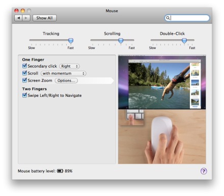 Det som är bra Förutom det finns det inget att gnälla på, snarare tvärtom. Magic mouse är lätt den precisaste trådlösa musen jag har kört på Mac. Inget irriterande lagg, ingen värdelös acceleration utan bara snabb och precis pekning.Och så är det scrollningen. Den är sagolik. På riktigt helt fantastisk. Funktionaliteten är rätt lik den på en iPhone, har du skrollat runt i adresslistan på just en iPhone så vet du vad jag pratar om. Sa jag att den var fantastisk? Mjukvaran då? När man har parat musen via Bluetooth så går det att använda musen men för att använda scroll och swipe så behöver man gå in i systemuppdateringar och ladda ner lite ny mjukvara. Tyvärr krävs det en omstart innan det lirar men sedan har mus-delen i System Preferences uppdaterats. Detta krångel väntas försvinna när 10.6.2-uppdateringen kommer ut till alla.Så är det köpläge? Ja! Om du inte spelar så klart. Om du sitter och kör 3D eller liknande ska du nog ta dig en funderare, eller om du är orolig för greppet. Men är du en vanlig användare som gör vanliga saker är den här rackaren ett lätt val.