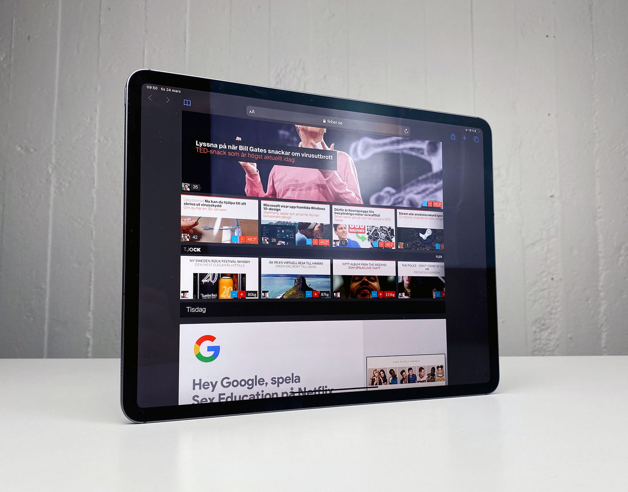 1. Stödet för touchpad kommer med iPadOS 13.4 och kan alltså användas även med andra iPads, som förra generationen iPad Pro. Detta är så klart något bra, att en sån funktion skulle kräva ny hårdvara hade bara varit dumt. Bra Apple! Men samtidigt, alltså inget du behöver uppgradera för. Stödet är dock fantastiskt trevligt, oavsett om man har nya eller gamla. Det fungerar i princip som en vanlig muspekare, men som ändrar lite form beroende på vart den är. I normala läget är den en rund, genomskinlig prick och när den kommer över text så blir den ett streck. Även om den är större än en vanlig muspekare så känns det här så klart igen från vilken dator som helst. När pekaren kommer över ett klickbart objekt, som en knapp, så markeras hela objektet och muspekaren fastnar lite. Det gör att man inte behöver fundera på om man är på väg att träffa rätt eller inte. Detta är smart och smidigt, men jag var rädd för att det skulle kännas konstigt, som att maskinen "snor" min pekare. Men eftersom gränssnitten på en iPad-app är gjorda för tjocka fingrar gör detta mig dels snabbare men jag får också en större känsla av att jag faktiskt interagerar med skärmen som vanligt, fast på lite distans. Apple har länge varit väldigt duktiga att hantera input från fingrar, både mot en skärm och mot en touchpad, och här bevisas det återigen. 2. Bättre kameror är alltid trevligt, men återigen inget att uppgradera för. Vidvinkel är supertrevligt på en telefon men kanske ännu trevligare på en tablet där man vill få in så mycket som möjligt av rummet. Bildkvaliteten är riktigt bra, men jag har helt ärligt inte orkat gå ut och jämföra den med iPhone 11 eller Samsung S20, för helt ärligt - vem fotar med sin tablet? Selfiekameran tror jag inte har uppgraderats alls, vilket är tråkigt. Varför då undrar ni, man ska ju inte fota med sin tablet? Anledningen är så klart att man använder den väldigt mycket när man videokonferensar och det är en trevlig sysselsättning på en tablet. Så en smula bättre kamera med vidare vinkel saknar jag efter att ha blivit bortskämd med det från iPhone 11. Jag fattar inte heller varför den sitter, tillsammans med FaceID, på ena kortsidan. Resultatet blir bilderna ovan (beroende på vilken vinkel man har på skärmen) när man stirrar på mitten av skärmen. Kameran och FaceID borde sitta på långsidan. 3. Bredvid kamerorna finns en ny kamera, som är en kamera men ändå inte. Det är en LiDAR, en teknik som i vanliga fall kanske gjort sig mest känd för att användas på självkörande bilar. Då ska de räcka långt och är stora och fula. Och dyra. Versionen som sitter i iPad är dock betydligt mindre och räcker fem meter. LiDAR är en sorts time-of-flight-kamera (ToF) som mäter hur omgivningen ser ut och ToF-kameror har vi sett i många mobiler på sistone där de hjälper till med att göra porträtt finare. Det är svårt för mig att på en helg lista ut skillnaden mellan Apples LiDAR och konkurrenternas ToF men spontant känns den väldigt kompetent och partytricket där man kan mäta hur hög en person är är riktigt imponerande. Det är också fantastiskt att kunna använda AR-appar direkt utan att hålla på och scanna golvet först. Frågan är vad man behöver detta till - nu. Apple har visat upp främst AR-applikationer men man har även gjort API-funktioner så att utvecklarna enkelt kan använda LiDAR-kameran. Det är alltså ingen vild gissning att tekniken kommer även till iPhone och då kanske det faktiskt får fart, om bara iPad Pro får detta kommer vi nog inte få ser fler appar är de som redan nu har visats. Så, just nu ingen anledning att uppgradera, men en funktion som kan bli intressant framåt. 4. Vi är vana att iPhone får ett nytt chip och så får iPad samma chip med ett X efter. iPhone Xs fick A12, iPad Pro fick A12X. iPhone 11 fick A13 och då borde nya iPad få A13X. Men se nej, där gick vi bet. Istället fick vi A12Z, en uppgraderad version av processorn som kom 2018. Och det var ju en riktigt imponerande sak som duger gott fortfarande, men lite konstigt är det. Helt orörd är den alltså inte, men fysiskt är det enda som har hänt att grafikdelen nu har åtta istället för sju kärnor. Apple själva säger att den är ”2,6x snabbare än A10X och även snabbare än A12X” vilket gör att jag drog igång Geekbench med försiktiga förhoppningar. Och skillnaderna i Geekbench 5 är minimala för att inte säga försumbara. På multicore betyder det att man ligger på runt 4600 vilket är 1200 mer än iPhone 11 och ännu mer jämfört med de fetaste Android-telefonerna. På singlecore betyder det dock att iPad Pro av senaste snitt är långsammare än iPhone 11-serien (ca 1100 vs ca 1300). Även om man fortfarande är betydligt snabbare än Android-gänget och kraften räcker gott så är det lite konstigt. Hur som helst är det ingen anledning att uppgradera. Det är dock inget att tveka kring om du ska köpa nytt, iPad Pro är fortfarande galet snabb på allt jag kastar på den. 5. Den sista stora nyheter är det nya tangentbordet med inbyggd styrplatta. Om detta är värt den feta prislappen återstår att se, vi har inte testat det eftersom det kommer i maj. Istället har vi kört med Smart Keyboard Folio och en extern styrplatta vilket fungerar ok, men som så klart inte är den ultimata setupen. Det verkar också som att det nya tangentbordet med inbyggd styrplatta kommer att fungera med förra generationens iPad Pro. Så en hel hög med nyheter men ingen anledning att uppgradera om du köpte en iPad Pro för ett år sedan. Låter rätt trist va? Så kan man se det, men man kan också se det som att Apple släppte något riktigt bra i oktober 2018 som fortfarande spöar konkurrenterna. En liten applåd ska också ges för att man gör nya funktioner som även kan användas av äldre hårdvara, det gör att du som konsument kan känna dig trygg