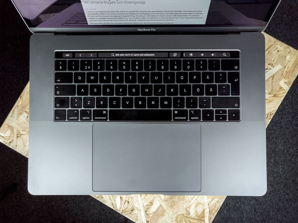 Men vi börjar med utsidan. Här är det inte mycket nytt alls. Tangentbordet har fått sig en uppdatering och jag måste säga att jag gillar det jag känner. Man kan skriva vid en sovande partner utan att hon vaknar, bara en sån sak. Jag har blivit riktigt härligt snabbt på det och det ska vara bättre mot smuts. Det senare är svårt att testa, det är ju en sak som kommer med tiden. Men att det finns ett skydd där är i alla fall lovande. Ett tangentbord kan alltid bli bättre, men det här får lätt 4 av 5 i betyg. Touchbaren är fortfarande samma sinnessjukt usla idé som jag hatat sedan den kom. Den gör ingen del av mitt liv bättre, jag trycker på knappar som jag inte visste fanns utan att veta om det och det gör ingen lycklig. Det enda den där raden gör skillnad för mig är att jag måste tänka på att hålla fingrarna borta från toppen av tangentbordet. Och att jag måste kolla ner och att det är två steg istället för ett om jag vill sänka volymen. Det är helt fantastiskt uselt att Apple lyckats få till fysisk feedback på iPhone med sin Taptic Engine och att det inte verkar gå att göra på MacBook Pro. Det enda som är bra med den där touchbaren är egentligen inte en del av den. Uppe till höger finns TouchID. Det är ju verkligen inget unikt att logga in med sitt finger-avtryck 2018 i och för sig men trevligt att ha. Varför en dator som kostar så här mycket pengar inte har FaceID är ett skämt, speciellt när Microsoft löst det så snyggt. Nytt är däremot att hanteringen av ditt fingeravtryck sker i den nya T2-processorn . T2-processorn hanterar också kryptering av data på hårddisken on-the-fly så att man kan ha det påslaget utan att få prestandaskillnader. Gillas! T2-processorn hanterar också Hej Siri, vilket betyder att man kan dra ingång Siri som ett lager ovanpå det man håller på med. Om jag sitter och skriver en text och undrar var 165 plus 185 är kan jag få svar på det utan att varken röra musen eller flytta pekaren från texten. Faktiskt riktigt skönt när man väl börjar använda det!En inte oviktig del är att högtalarna har uppdaterats. De var inte dåliga tidigare men nu är de ännu bättre. Sitter man ensam i ett rum blir man förvånad över hur stort och fylligt ljudet är och framförallt hur mycket bas de ger. Imponerande. Skärmen (och även touchbaren) har nu fått Truetone. Det betyder att vitbalansen på skärmen justeras efter omgivning på samma sätt som skärmen på en iPhone har gjort ett tag. På telefonen är det fantastiskt mest hela tiden men på datorn är det verkligen upp till situationen. Om jag bara sitter och skriver säger jag ja tack, om jag håller på med video eller bilder är det verkligen nej tack. Det konstiga är att man inte har en snabbknapp för att stänga av detta på den där touchbaren, så jag gissar att olika användare kommer att ha det på eller av konstant. Styrplattan är samma som förut. Det betyder att den är stor (kanske för stor), exakt och fantastisk. På sidorna hittar vi fortfarande fyra Thunderbold/USB-C-portar. Man är ju lite trött på att gnälla om detta, men en vanlig USB-port hade fortfarande suttit väldigt, väldigt fint. Nu börjar vi närma oss insidan. Och där har det hänt saker. De nya processorerna har ni inte missat. Upp till i9 och alla 15-tummare har numera 6 kärnor. Jag har inte ett arbetssätt som riktigt använder varken processor eller grafikkort till max så det hade varit fånigt av mig att slänga in ett statiskt test här, det finns redan drösvis med recensenter som har testat loss. Det jag kan säga är att för mig räcker det och blir över. Utan tvekan. Hade jag köpt den här hade det dröjt länge, länge innan jag bytt upp mig på grund av hastighet. För mig hade datorn troligen räckt i fem år utan att jag skulle börja gnälla. Något som jag märker av är däremot att man kan ha 32 GB RAM. För mig som har massor av saker uppe samtidigt är det fantastiskt. Det finns inte en tanke på att stänga ner ett program för att frigöra minne vilket är härligt. En given uppdatering, även om det kostar 4400 kronor! Minnet är snabbare ddr4-minne men det betyder också att minnet drar mer ström. Batteriet har blivit större men den storleken äts upp av minnets strömhungrighet. De nya processorerna gör sitt här också men i slutändan har man alltså fortfarande 10 timmars teoretisk arbetstid. Om man väljer den lite dyrare modellen (32.995 kronor) får man 512 GB minne med. Detta går att uppgradera till 1TB, 2TB eller 4TB. För folk som jobbar med mycket data är det fantastiskt att kunna ha datan direkt på maskinen och på dess supersnabba minne, istället för på en extern disk. Men det kostar. Uppgraderar du till 4TB så betalar du mer för det (35.200 kronor) av vad du betalar för resten av maskinen. Med den där givna uppgraderingen av RAM-minnet (4400 kronor) och uppgradering till i9-processor (2700 kronor) har vi en prislapp på 75.295 kronor för max-konfigurationen. Mycket pengar, men de som behöver det där minnet leasar sin dator och det blir snabbt en struntsumma. Privat är det däremot galet. Till det ska man så klart (?) ha läderfodralet för 2395 kronor. En snygg detalj är att man stansat ut plats för fötterna. Det här årets MacBook Pro är en rejäl uppdatering och har du en maskin som är några år gammal skadar det verkligen inte att uppgradera. Trots att man fixat irritationsmoment som tangentbordet känns Apple nästan bakbundna med val som man har gjort tidigare. Man är vana att kunna göra lite vad man vill och köparna har varit så insyltade i macOS att de helt enkelt har fått ta det som erbjudits. Med förra generationen av MacBook Pro blev nog till och med Apple lite skakis när många självklara proffsköpare lämnade tillbaka sina maskiner i protest och vägrade uppdatera. Jag är inte säker på detta men jag hoppas verkligen på att alla Macar kommer att få fullt fokus i 
