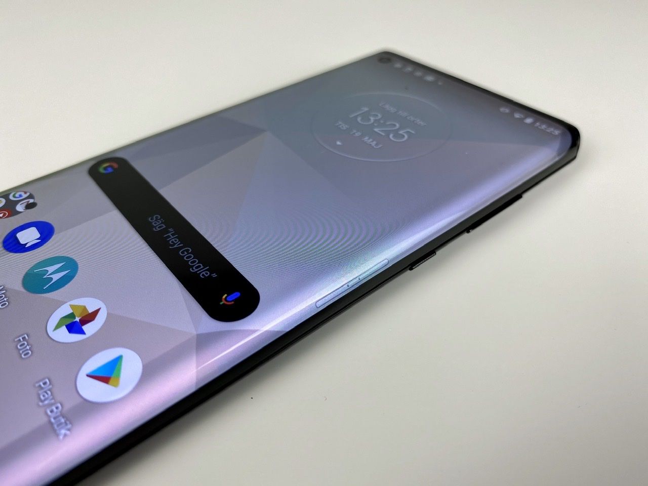 När vi ska låsa upp telefonen gör vi det med en fingeravtrycksläsare som ligger under skärmen. När man är van vid FaceID eller fingeravtrycksläsare som är blixtsnabba blir man lite ledsen på att Motorola inte har lagt lite mer pengar på fingeravtrycksläsaren i Edge+. Inte flaggskeppsstandard här inte. Någon möjlighet att låsa upp med ansiktet finns inte alls.Väl upplåst är skärmen spontant rätt imponerande. Den är ju gigantisk och visst finns det lite kant uppe och nere men kanternas böjning gör ju att skärmen känns som att de går ändå ut i oändligheten. Upplösningen är dugliga 1080x2340 vilket ger 385 ppi. Motorola har gett skärmen en uppdateringsfrekvens på 90 Hertz vilket vi så klart älskar. Ett snabbt chip och en snabb skärm är en magisk kombination för att leverera en konstant trevlig upplevelse för användaren. För mycket kanter?