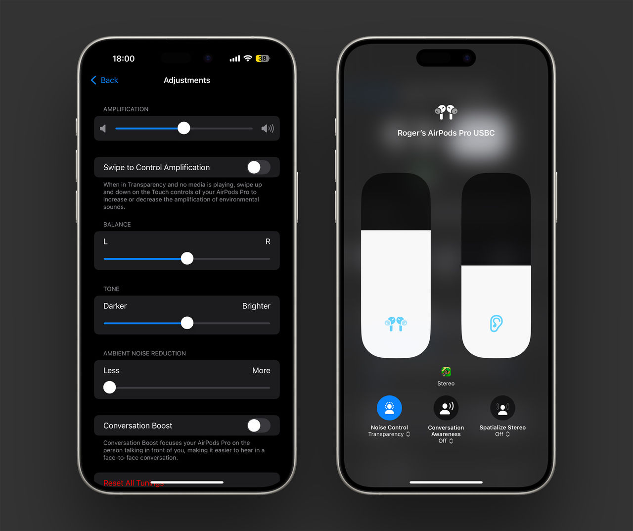 Att veta att man har dålig hörsel hjäper ju till, men AirPods Pro 2 kan också fungera som hörapparat. Med testet som bas kan man sätta på funktionen och vips så hör man bättre. Som med allt här i världen tar det ett tag att vänja sig, men det gick väldigt snabbt med den första tillvänjningen. Ett antal inställningar finns och man kan bland annat slå på en conversation booster. Då förstärks ljudet från den som står framför dig, något som kan vara praktiskt. Det verkar dock vara lite för hardcore och är inte något som man vill ha på hela tiden. I kontrollcentret får man nu två ljudreglage, ett som styr ljudvolymen på det man lyssnar på, musik eller samtal och sånt. Och ett som styr hur mycket hjälp man vill få med att lyssna på omvärlden. Ibland vill man ju inte ta in så mycket omvärld, så möjligheten att justera detta är bra. Lurarna och systemet ska anpassa sig till omgivning och situation och ställer in sig efter det. Nu har varken jag eller mamma provat riktiga hörapparater, men jag frågade en kollega i branschen som också testar dessa och de riktiga hörapparaterna är fortfarande snäppet bättre på just detta. Men AirPods Pro levererar bra.