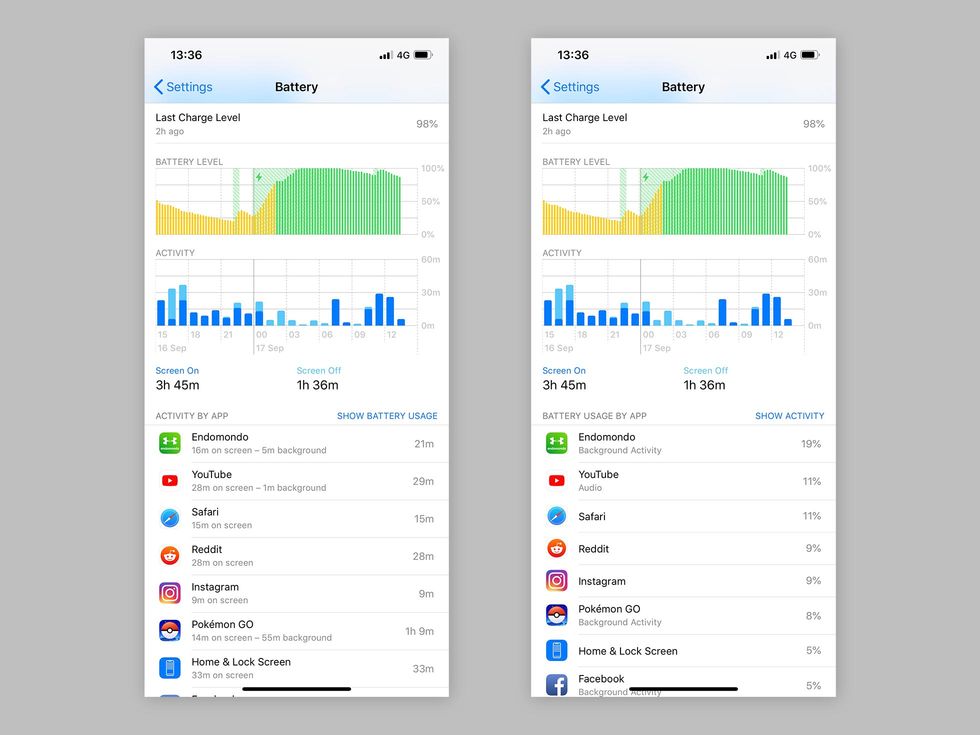 Vilka appar suger ström? Den eviga frågan får nu äntligen svar. Batterikollen är numera betydligt bättre och du hittar den i inställningarna. Här ser man hur mycket batteri som har dragits och om det har varit när appen varit i för- eller bakgrund. Man kan snabbt se här att Endomondo är en skitapp.