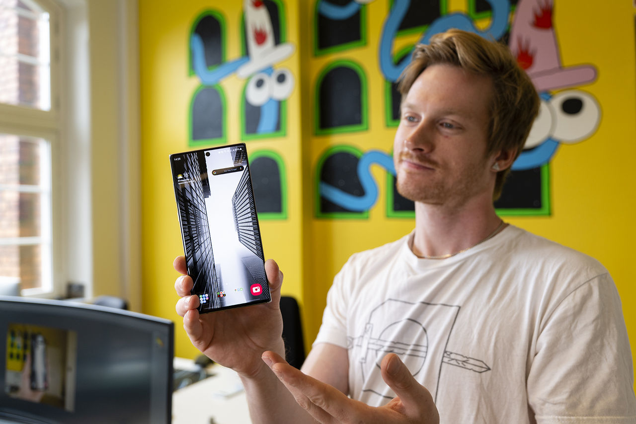 Vi börjar med utsidan. Med Note 10+ fortsätter Samsung sitt korståg att göra sina telefoner riktigt slimma och lätta, men ändå leverera en komplett skärmupplevelse. Telefonen har en AMOLED-skärm på rätt massiva 6,8 tum och i vanlig ordning har enheten en kantigare design jämfört med syskonen i S-serien. Undertecknad föredrar den mjukare designen i S-enheterna då kantigheten i Note 10+ gör att telefonen känns större och klumpigare än vad den egentligen är. Och det förstör helhetsupplevelsen en aning.