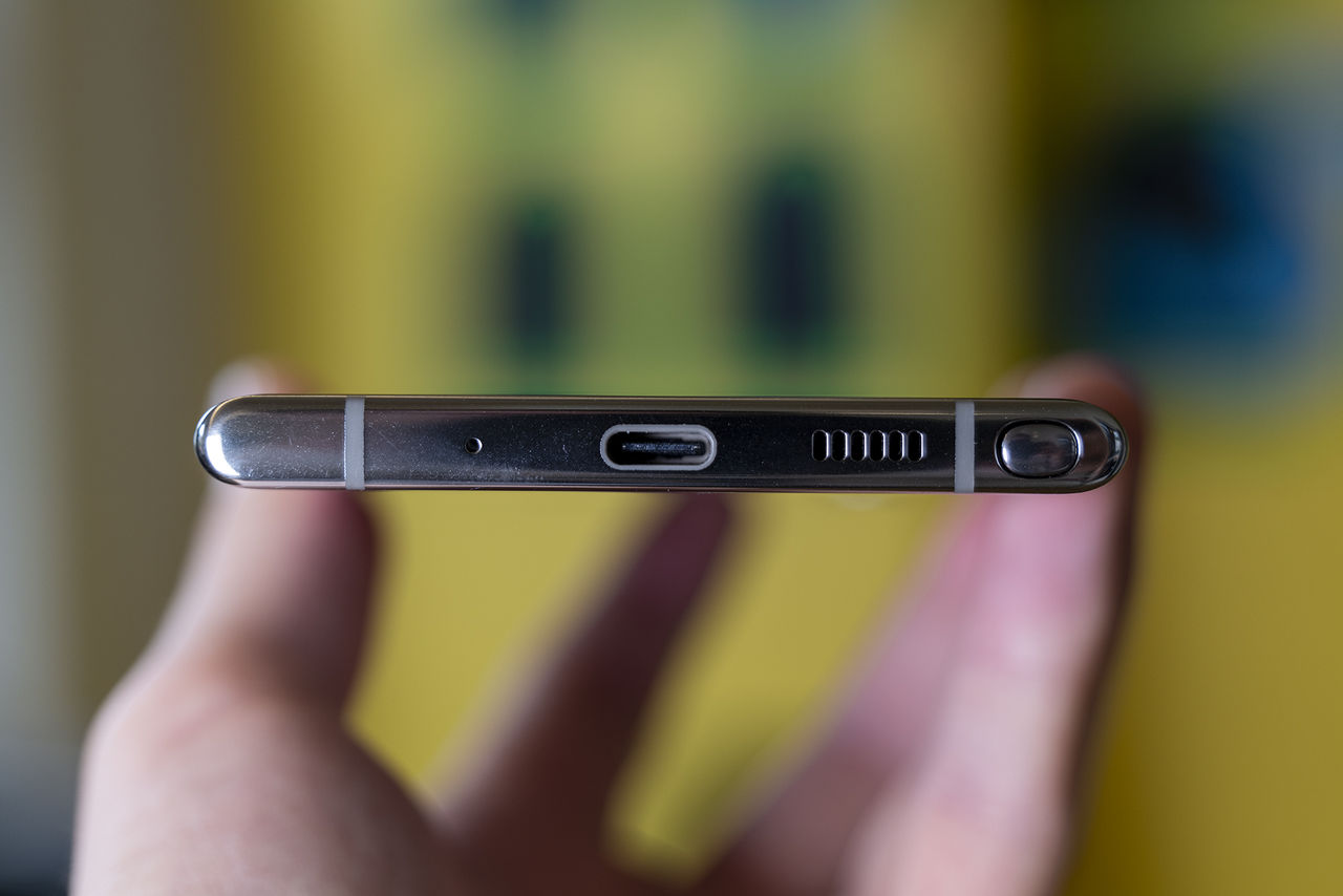 Något som Samsung ska ha cred för är byggkvaliteten. Med en tjocklek på 7,9mm och vikt på nästan 200 gram känns telefonen riktigt rigid och hållbar. Luren har precis som tidigare glas fram och bak, så telefonen bör skyddas med skal eller i alla fall göra den mer greppvänlig med skins från Dbrand eller liknande. Fortsätter vi kika på utsidan kan vi se att det skett lite trevliga, och lite otrevliga, ändringar jämfört med föregångarna i S-serien och Note 9. Samsung har bestämt att möblera om på knappfronten och på telefonens vänstra sida sitter nu en liten powerknapp samt volymknapp. Borta är Bixby-knappen, vilket är något vi verkligen uppskattar. Bixby-funktionaliteten har dock flyttat in i Power-knappen, men Bixby-aktiveringen går att stänga av med några enkla knapptryck. Det är en rätt rimlig kompromiss.Något som inte är riktigt lika rimligt är borttagningen av hörlursuttaget. Ja, det är 2019 och andelen individer som använder trådade lurar blir allt färre och färre, men Note-serien har alltid handlat om en komplett mobilupplevelse och det känns mer motiverat att plocka bort pluggen i S-serien än i Note. Som grädde på bajsmoset skickar Samsung inte ens med en hörlursdongle, utan en sådan måste köpas separat. När Apple och OnePlus initialt plockade bort hörlursuttagen i sina enheter så skickades det med en sådan dongle, men företagen har nu slutat med det. Att inte erbjuda en sådan dongle i sin första enhet utan hörlursuttag känns helt ärligt bara snålt. Visst, du får med ett par USB-C-lurar, men kom igen. En dongle hade verkligen inte skadat. Samsung motiverar dock borttagningen av hörlursuttaget med att det nu är möjligt att peta in större batteri och förbättra vibrationsmotorn. Mer specifikt har batteristorleken gått från 4000mAh i Note 9 till 4300mAh i Note 10+, vilket ger användaren någon timmes extra batteritid. I stället för att plocka bort hörlursuttaget så hade Samsung kunnat göra telefonen lite tjockare för att få plats med större batteri och det hade troligtvis användarna accepterat till fullo, men det verkar Samsung inte vara intresserade av.