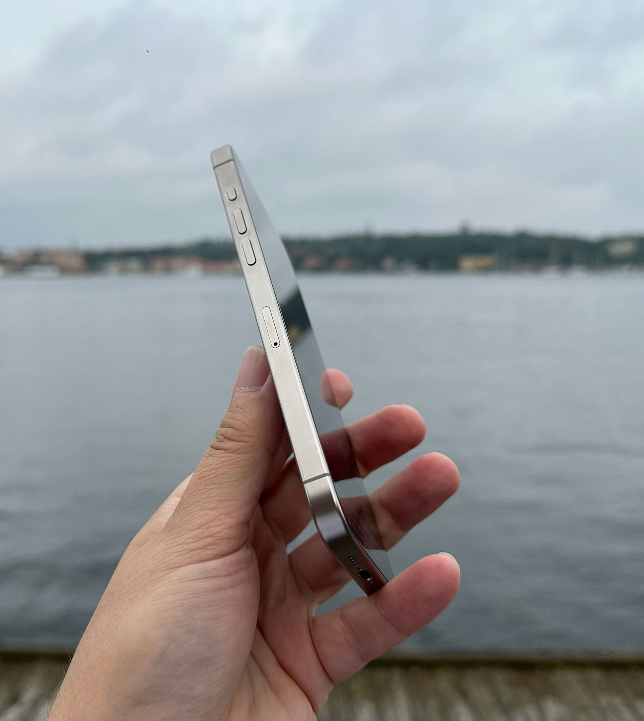 iPhone 14 Plus - 203 gram iPhone 14 Pro Max - 240 gram iPhone 15 Pro Max - 221 gramSom ni ser så ligger numera Pro-telefonerna med titanram mellan icke-pro-lurarna med aluminiumram och de gamla pro-lurarna med stålram. Och detta trots att det i teorin finns lite mer saker i en Pro, som en extra kamera, så titan gör skillnad. Det gör skillnad i verkliga livet också, för telefonen ligger nu under gränsen för hur mycket en telefon bör väga, även i Pro Max-utförande. Det tackar vi för. Telefonen är ju också lite, lite, lite mindre än tidigare vilket inte gör märkbar skillnad i handen men inte skadar det minsta.