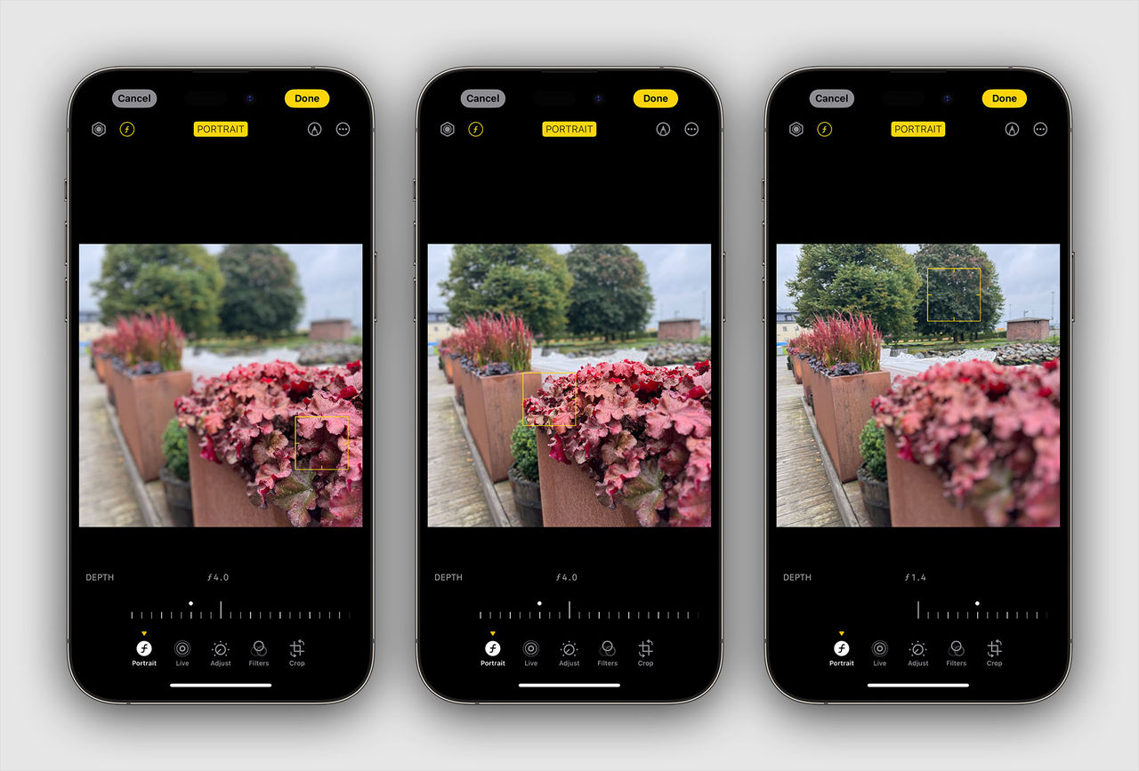 Porträtt-läget på moderna mobiler kan vara rätt roligt. Men det är verkligen en hit eller miss, ibland kan det bli rätt trevligt och ge en skön effekt, men ofta blir det halvbra och rätt ofta blir det superdåligt. Inget man använder på de viktiga bilderna med andra ord. Apple har nu fixat en smått genial lösning på detta. I det vanliga foto-läget så sparas numera en djup-karta så fort en människa, en hund eller en katt är med i bilden. Detta fungerar inte som standard på prylar, men om du duttar på skärmen och sätter fokus på en pryl i (eller del av) bilden så sparas det också en djup-karta. Det ser du genom att det blir en liten knapp med ett f i till vänster om zoom-verktygen. Klickar du på den så får du se "live" hur det kan komma att se ut. Sedan är det bara att gå in i redigera-läget och välja porträtt och vips så kan du sätta fokus och bestämma hur mycket bokeh bilden ska få. Det är såklart inte riktig bokeh utan en fejkad oskärpa, men ibland kan en gnutta oskärpa (även fejkad sådan) ge lite liv åt en trist bild. Det går även att sätta vart fokusen ska vara i bilden. Riktigt lika flådigt som Apple vill få oss att tro är det dock inte. Man kan i efterhand välja vart man vill ha oskärpa, inte skapa skärpa i bilden. Det betyder att om två saker är i skärpa (eller nästan i skärpa) i originalbilden så kan du välja vart oskärpan ska ligga, och på så sätt även vart skärpan ska vara kvar. I exemplet ovan fungerar det på busken i förgrunden. Men om något är oskarpt på ett naturligt sätt i originalbilden så går inte det att rädda i efterhand, så när man sätter fokus på trädet i bakgrunden så blir det inte helt magiskt i fokus. Dit har vi inte kommit ännu. Men som sagt, på platta bilder som behöver lite liv är det rätt fräckt. Detta ska även gå att göra med video, men det har vi tyvärr inte hunnit testa.