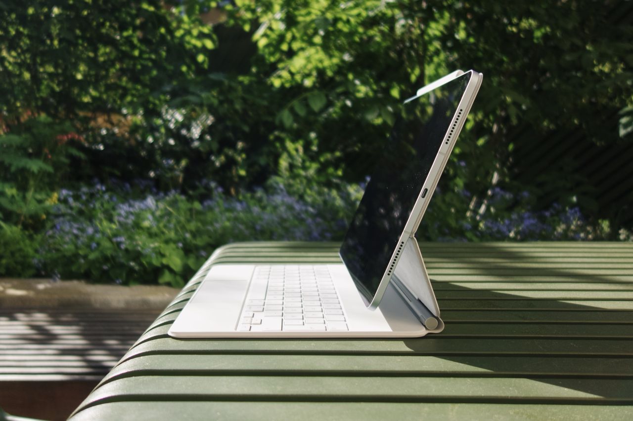 Vi hade hoppats att iPad Air på 13 tum kanske skulle få Mini LED-panelen från gamla iPad Pro. Det skedde inte. Istället får den samma panel som iPad Pro från 2018. Med ett stort förbehåll – ingen ProMotion. Skärmen har alltså ingen variabel uppdateringsfrekvens mellan 24 och 120 Hz. Här får vi nöja oss med 60 Hz. På en telefon är det märkbart med högre uppdateringsfrekvens, men det går att leva utan. Samma gäller egentligen för MacBook, även om det förstås är en smaksak. iPad är dock en enhet som på allvar gynnas av 120 Hz, inte minst för Apple Pencil. Det är också någonting med storleken på skärmen och inmatningsmetoden som gör det extra märkbart. Jag säger inte att min gamla iPad känns rappare än denna iPad Air med M2 – men jag säger inte heller att den inte gör det.Utöver detta är skärmen på nya Air fortfarande en riktigt schysst skärm, med bra färgåtergivning, betraktningsvinklar och okej kontrast för en IPS-panel. Värt att nämna är att 13-tummaren har aningen ljusstarkare skärm på 600 nits jämfört med 11-tummarens 500 nits.Du får nöja dig med gamla Magic Keyboard om du köper nya iPad Air.