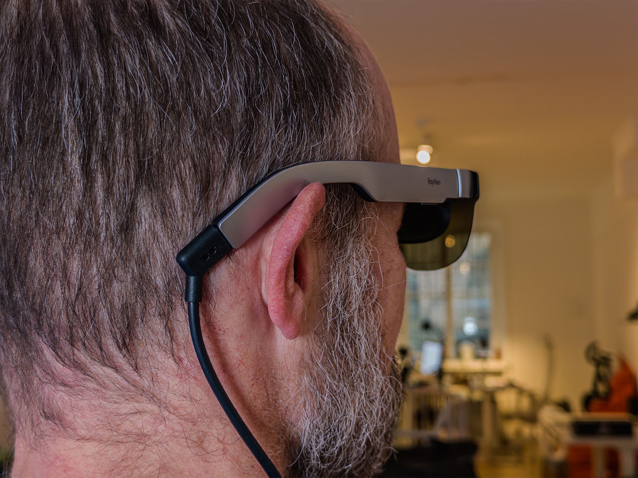 När jag hör AR-glasögon tänker jag på glasögon som lägger ett digitalt lager med information över det som syns genom glasögonen. RayNeo Air 3S fungerar däremot, precis som Xreal One, som vi testade tidigare i år, som en stor skärm som tar bort allt som syns genom glasögonen när de inte är inkopplade till något. Att kalla dem för VR-glasögon känns även det lite konstigt då de saknar den funktionalitet som VR-headset har. Personligen föredrar jag att kalla den här produktkategorin för "tv-glasögon" eller "glasögonskärm".