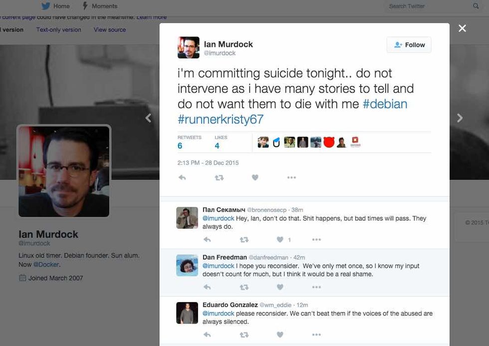 Från USA kommer den tragiska nyheten att skaparen av det populära unixliknande operativsystemet Debian [wiki], Ian Murdock [wiki], har dött. Det är fortfarande lite oklart om vad som orsakat 42-åringens död men på hans numera raderade twitterkonto ska det ha postats en del inlägg som antydde att han tänkte ta sitt eget liv.I ett uttalande på Debians blog [länk] skriver man: "With a heavy heart Debian mourns the passing of Ian Murdock, stalwart proponent of Free Open Source Software, Father, Son, and the 'ian' in Debian. Ian started the Debian project in August of 1993, releasing the first versions of Debian later that same year. Debian would go on to become the world's Universal Operating System, running on everything from embedded devices to the space station."