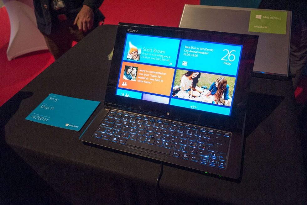 Jag var och hängde på Microsoft stora premiär av Windows 8 i dag. Eller smygpremiär kanske man ska säga, den riktiga premiären är ju i morgon. En hel del hårdvara fanns att glo på och det var verkligen hårdvara i alla möjliga former.Från RT-tablets med och utan fysiskt tangentbord, Atom-tablets med och utan tangentbord, ultrabooks som går att vrida till tablets, "vanliga" bärbara och stora stationära. Gemensamt för dem alla var att de körde Windows 8 och att de hade touch-skärmar. Det känns faktiskt som att hårdvara utan touch kommer att vara ett minne blott nästa år. Vill PC-tillverkarna sälja Windows 8 känns det nästan som ett krav med touch.Microsoft tjatar mycket om "inga kompromisser" men överallt man vänder sig är det faktiskt just det - kompromisser. Är tabletsen små och behändiga rullar de antingen RT - och kan inte köra gamla hederliga Windows-program - eller så kör de Atom-processorer från Intel - inget jag skulle vilja ha på en arbetsdator direkt.Pratar man riktiga datorer pratar man minst 11 tum, ibland 13, och när det sitter riktiga processorer i maskinerna blir de knappast tunna och rätt otympliga att använda som tablets. Eller alltså, de är tunna i jämförelse med förra generationens datorer men absolut inte i jämförelse med de tablets vi har börjat vänja oss vid. Sony Vaio Duo 11 på bilden ovan är ett exempel, spännande konstruktion som känns som mer tablet än dator men när den väger in på 1.3 kilo funderar man lite hur de har tänkt egentligen. En iPad som får en del skit för att den är för stor och tung väger in på 0.65 kilo - exakt halva vikten.Antingen bra på det ena eller andra helt enkelt. Det fina är att det finns ett stort utbud, många borde kunna hitta en maskin som passar just dem och deras behov - men en maskin som passar allt och alla fanns inte på plats tycker jag. En maskin som skulle kunna vara den heliga gralen är Microsofts egna stjärna Surface. Tyvärr lyste Surface med sin frånvaro, vilket så klart var tråkigt. Microsoft hade inte ens bemödad sig att fixa maskiner att klämma på ens. Surface är ju den maskin som kanske bäst visar på en trevlig framtid utan kompromisser men vi här i Sverige får helt enkelt ge oss till tåls ett tag till. För att vara ett gäng med maskiner av första generationen är utbudet trots allt lovande. Fortsätter utvecklingen som den gör nu kommer vi att ha helt bisarra maskiner inom kort hoppas jag. Maskiner som både kan vara supertunna och supersnabba. Två saker jag hoppas förändras till nästa generation hårdvara är dels att VGA-porten försvinner - den ser grotesk ut på en del av de små, sexiga maskinerna - och dels att laddarna får sig en uppgradering. De känns inte heller värdiga den nya hårdvaran.Är man inte i akut behov av en ny maskin ska man nog ha is i magen. Är du i köptagen - kolla runt rejält.
