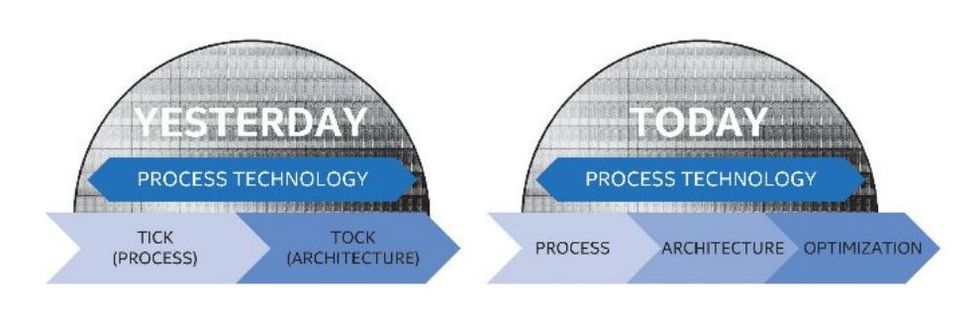 Intel har sedan urminnes tider, i alla fall sedan 2006, kört tick-tock-modellen när de bygger processorer, det vill säga att de släpper en ny processorarkitektur vartannat år och spenderar året mellan med att ta fram ny tillverkningsteknik. Nu verkar det dock bli andra bullar och Intel kommer slänga in ytterligare ett år i utvecklingsprocessen. Under denna treåriga period kommer Intel alltså jobba på ny tillverkningsteknik under ett år, sedan jobba med processorarkitektur året efter och det tredje året kommer spenderas med att optimering. I folkmun betyder detta att vi inte kommer få några Cannon Lake-processorer byggda med 10nm i år, utan Intel kommer släppa en finslipad variant av 14nm-processorerna i Skylake-familjen vid namn Kaby Lake. Anledningen till detta är att utvecklingen av nya tillverkningsprocesser tar rätt lång tid och Intel behöver ha lite extra tid på sig för att gå från 14nm till 10nm, vilket är nästa stora steg i tillverkningsprocessen.
