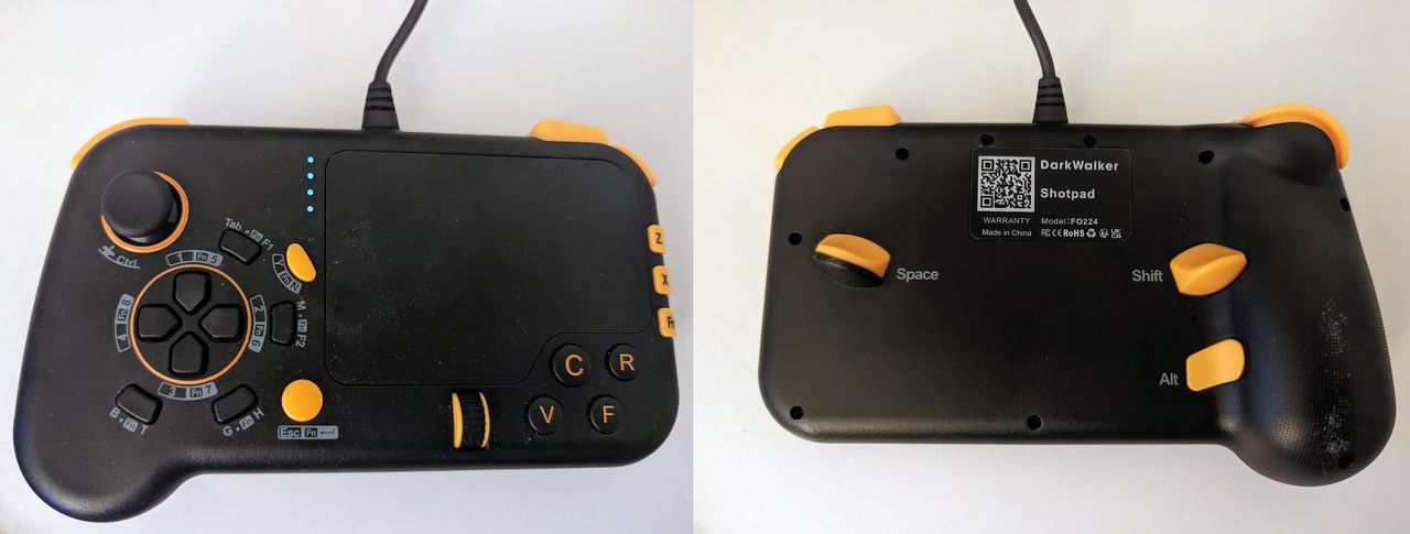 Att testa handkontrollen DarkWalker ShotPad har varit något av det mest utmanande jag gjort hittills. Anledningen till det är helt enkelt att jag har använt traditionella kontroller i så pass många år, så jag hade enormt svårt att vänja mig vid hur den här något okonventionella kontrollen fungerade. Det innebar att jag spenderade många spelsessioner med att träna om decennier av muskelminne från traditionell kontroll till hur den här kontrollen är tänkt att användas. Inte helt oväntat var det extremt frustrerande och smärtsamt för tummen. Så innan jag hade ett bättre grepp på kontrollen var det svårt att få en någorlunda rättvis uppfattning om den.DarkWalker ShotPad må se ut som en lite annorlunda handkontroll, men det är egentligen en mus- och tangentbordskombination. Den stora styrplattan på vänstersidan ska emulera musrörelser, medan alla andra knappar är en tangentbords- eller musknapp. Detta har gjorts tidigare, bland annat av Valve med sin Steam Controller. Kontrollen kopplas till dator eller konsol via USB, men eftersom konsoler inte känner av den som en kontroll så fungerar den endast där med spel som stödjer mus och tangentbord.
