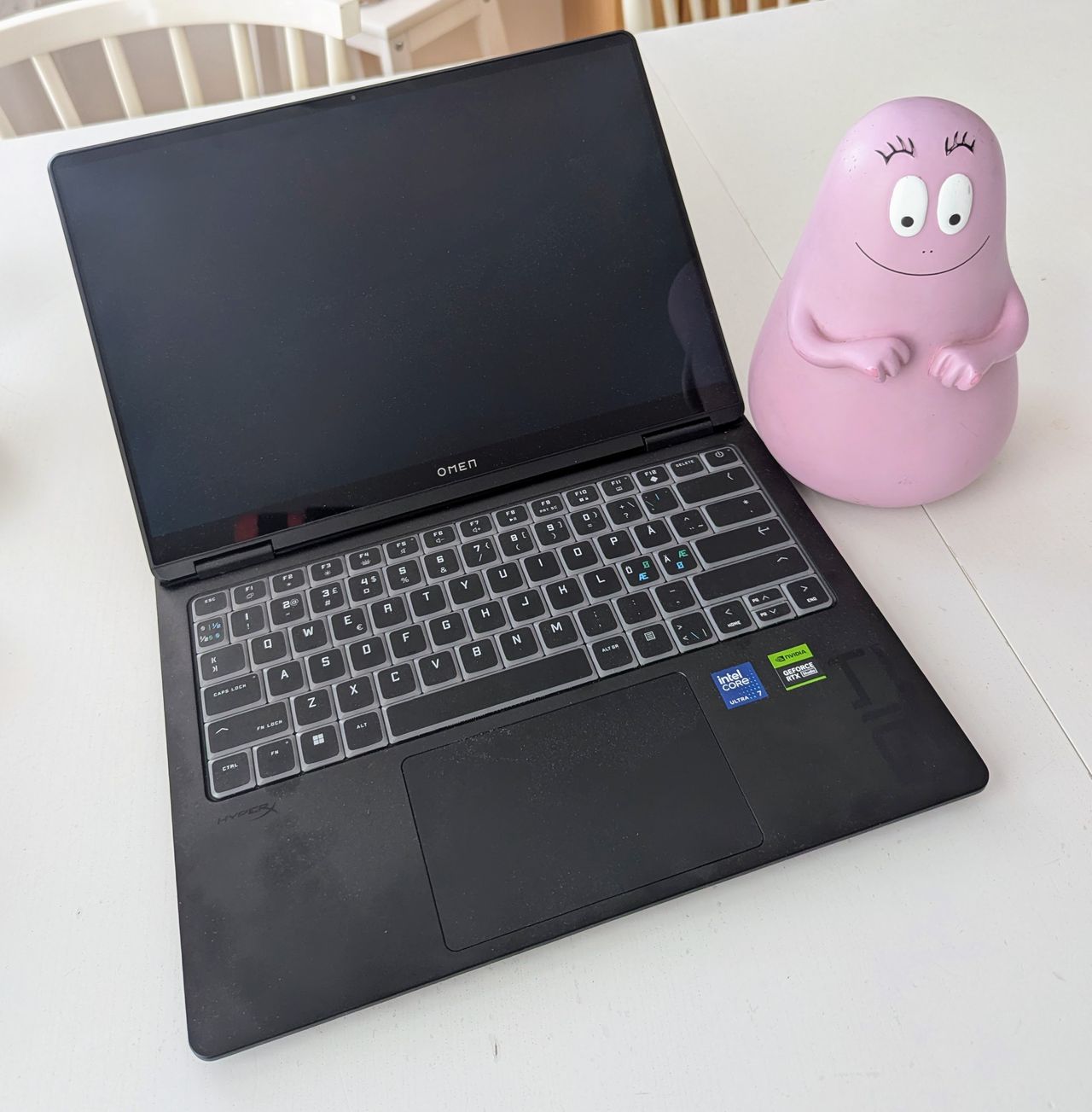 Vardagliga arbetsuppgifter klarar den så klart utan problem. Även Photoshop, Blender, videoredigering och -rendering klarade den utan att svettas. Den matchar dock inte vad en vettig Mac-laptop kan på just den fronten, men för att vara en Windows-dator lirar den riktigt bra. Till skillnad från en vettig Mac-laptop kan den faktiskt spela alla spel med. Datorn har AI-funktioner tack vare sin Meteor Lake-processor, vilket gör AI-funktioner i program som Photoshop ruggigt snabba. Under all belastning, både i spel och verktyg, blir datorn inte allt för varm eller låter för mycket, vilket är klart tacksamt. Den låter helt klart, men inte som ett jetflyg på väg att starta, vilket vissa spellaptops har en tendens att göra.Eftersom den har ett relativt smidigt format är den enkel att bära med sig, vilket gör den bra för folk som är på vift. Med sin tunna profil och en vikt på endast 1,65 kg är den lätt att ta med sig. Utseendemässigt är den kanske inte jättesexig, men inte heller provocerande obscen som vissa laptops kan vara. Den har till exempel inte någon överdriven RGB-belysning eller flashiga logotyper på utsidan. Tangentbordet på datorn får fullt godkänt och levererar en bra tangentryckskänsla. Vill man kan man så klart flasha till det här med häftig RGB-belysning under tangenterna, eller så kan man skippa det. Där det brister för mig är det klassiska misstaget många laptoptillverkare gör: tangentbordet är inte centrerat. Detta är så klart en personlig preferens, men jag har oerhört svårt att skriva på tangentbord där man måste hålla händerna något mer till vänster och delvist på pekplattan för att hamna rätt på tangenterna med fingrarnaNär det gäller portar har laptopen två USB-C, två USB-A, en HDMI-port och ett hörlursuttag. Dock används en av USB-C-portarna för laddning (140 Watt), vilket begränsar antalet tillgängliga portar för andra enheter. Den porten och HDMI-porten sitter båda på baksidan, vilket jag föredrar när man har den på skrivbordet, då man slipper ha något som sticker ut på sidorna. Men det gör det ju mikroskopiskt jobbigare att sätta in sladdarna igen om man bär med sig datorn ofta.En aspekt där datorn brister en aning, och som sannolikt är en konsekvens av den kompakta designen, är att batteritiden inte är superfantastisk. Att spela ett något mer krävande spel ger en cirka en timmes speltid innan man är tvungen att ladda datorn igen. Använder man den bara för att skriva och surfa lite kan man få upp till fem timmar om man dimmar skärmen en aning. Så det kräver ju att man alltid har en laddare nära.Det jag hade klarat mig utan är dock alla förinstallerade program. Direkt ur lådan får du med Dropbox, McAfee: Antivirus (som fortfarande kräver prenumeration), Intel Unison, Spotify, en herrans massa HP-grejer och OMEN Gaming Hub. Det senare är ett program som ska samla allt spelrelaterat på datorn. Med detta program kan man också hålla koll på kylningen, belysningen, webbkameran och en hel del annat. Jag tror dock att jag aldrig kände att jag behövde använda det och fann det mest vara ett överdesignat program som lika gärna kunde stannat hemma.HP Omen Transcend 14 kan lätt misstas för en helt vanlig kontorslaptop, men insidan erbjuder mer än så. Den levererar en elegant och enkel design med mycket respektabel prestanda för sin storlek. Så söker man en mångsidig och alldeles lagom kraftfull spellaptop som även klarar av tyngre redigeringsarbeten, så har detta något man definitivt kan överväga. Man får dock räkna med att dess begränsade batteritid gör att man alltid måste ha med sig en kompatibel laddare, då den inte fungerar så bra när batteriet väl är slut.Vill man gå ner sig och se en snubbe snacka om hur den klarade sig i Cinebench- samt Geekbench-tester kan man göra det här och någon som kollar prestandan i populära spel kan ses här. Omen Transcend 14 med Core Ultra 7-processorn säljs i Sverige för 23 989 kronor. Vill man ha den något kraftigare varianten då kostar den 26 989 kronor, eller 34 990 kronor om man vill köpa den direkt av HP. Under juli månad råkar Ultra 9-varianten vara billigare än Ultra 7-varianten på Elgiganten så det vore ju dumt att inte skaffa den extra kraften i den istället för ett lägre pris om man nu vill ha en sådan här dator. Det är dock värt att nämna att priserna fortfarande är tokiga i Sverige. I USA kan dessa datorer köpas för 1 300 dollar respektive 1 750 dollar. Efter en snabb sväng till Forex meddelade de mig att det motsvarar knappa 14 000 kronor respektive 18 800 kronor, vilket ju onekligen är mycket billigare än de svenska priserna.