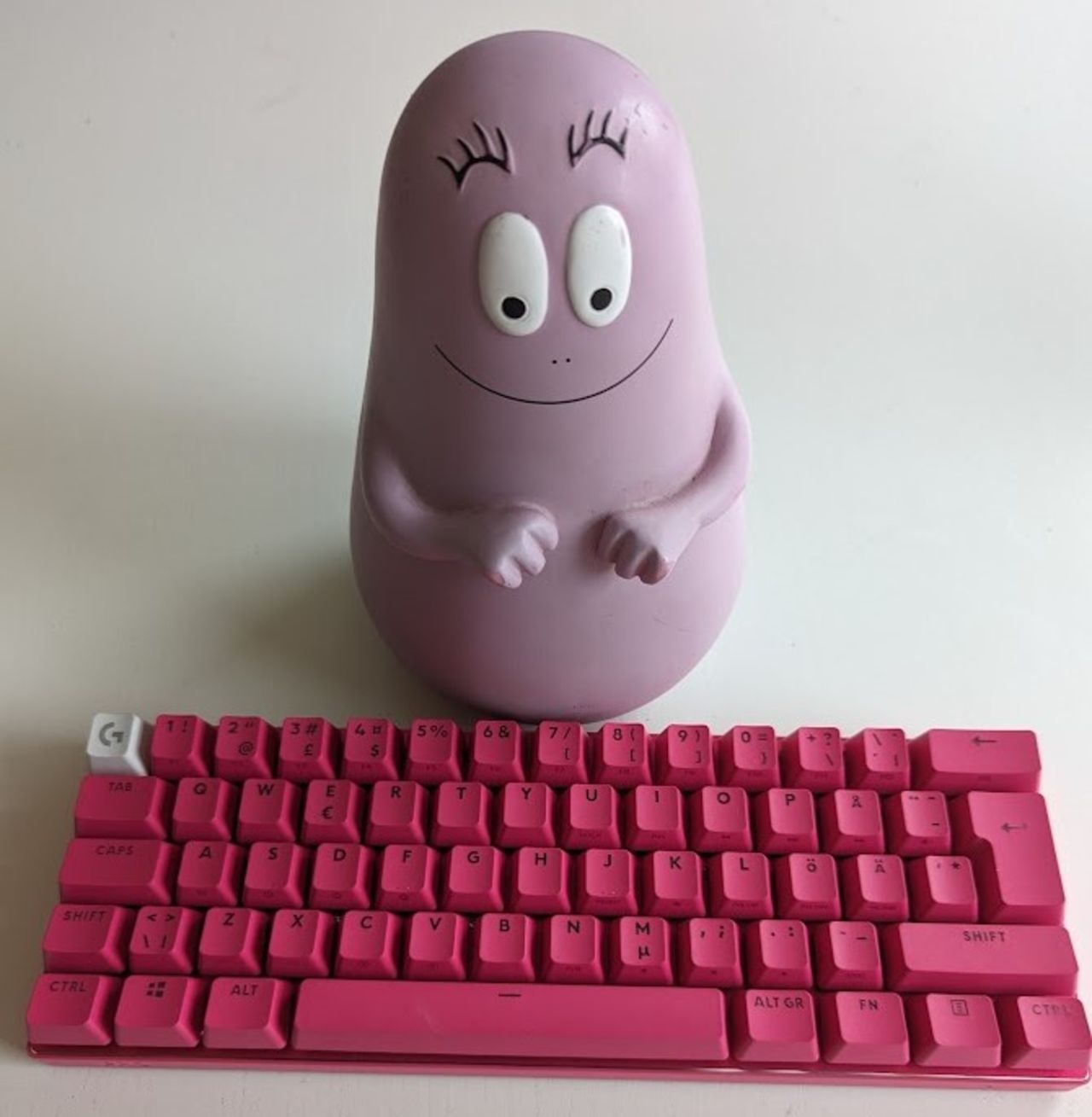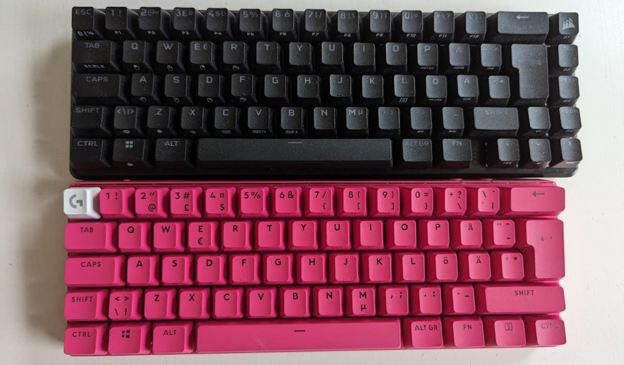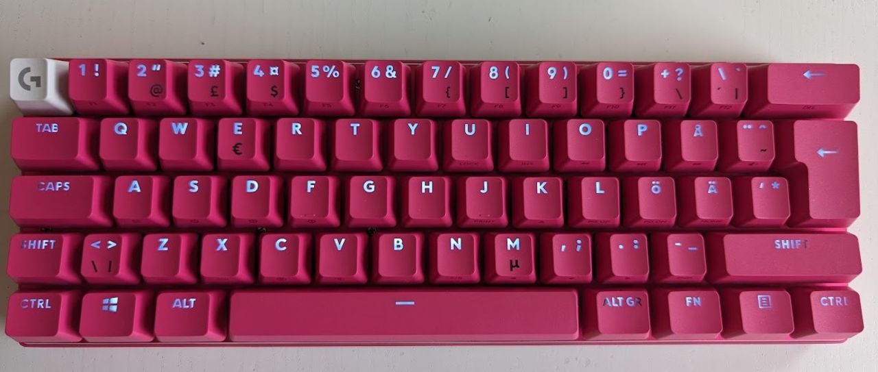 Precis som namnet antyder så är det här tangentbordet trådlöst. Det kan kopplas via både Blåtand eller med 2.4 GHz via en tillhörande USB-dongel. Denna dongel är en liten rackare men kan enkelt förvaras antingen på botten av tangentbordet eller i den medföljande bärbara väskan så man inte blir av med den. Denna väska är riktigt stabil och gör att man inte är orolig över att tangentbordet tar skada när man är på vift. Batteritiden ligger på 65 timmar men det gäller bara om man inte kör fullt blås med alla RGB-färger och sådant. På tal om RGB-färger så lyser tangenterna endast vitt när man startar upp det för första gången istället för att man bemöts av en färgshow som man sedan ändå stänger av så fort man kan. Ett vettigt beslut tycker jag.Det här följer med i paketetEn stor uppgradering för Logitech är de optiska GX-switcharna som ska minska beroendet av mekanisk aktivering och borde därmed förlänga tangentbordets livslängd. Själva knapptrycken känns bra, dock är det ingen orgasmkänsla som vissa andra premiumtangentbord erbjuder. Generellt känns byggkvaliteten solid, men det finns ett visst rassel av knapparna om man skulle få för sig att skaka tangentbordet.Logitech har lagt volymratten på vänster sida av tangentbordet då man då enkelt ska kunna komma åt det med lillfingret utan att man behöver släppa WASD-greppet. Personligen fann jag dock att ratten var lite för högt upp vilket gjorde att jag fick vrida handleden lite mer än önskat. På höger sida av tangentbordet hittar man också en brytare för Game mode. När man slår på denna så avaktiverar den utvalda knappar så man inte råkar trycka på dem av misstag, till exempel Windows-knappen. Precis som så mycket annat med tangentbordet kan man själv välja vilka knappar som ska ingå i Game mode och inte.Pro X 60 storleksjämfört med Corsair K65 Pro MiniTangentbordet har tagits fram i samarbete med esportare och riktar sig till folk som håller på med det eller sådana ambitioner. Man kan väl lugnt kalla det här för en spelkontroll än ett tangentbord men det är väl precis vad man vill ha om man vill få så bra K/D-ratio som möjligt. Jag har länge kört kombinationen av ett 65-procenttangentbord för spelande medan ett TKL-tangentbord för resten av datorarbetet då jag helt enkelt har vant mig för mycket med det när det gäller skrivandet. Den trenden kommer nog att fortsätta dock har Pro X 60 nu blivit mitt primära gaming-tangentbord mycket tack vare dess trådlösa natur och G-Shift-funktionerna, funktioner som faktiskt förbättrat mitt Rainbow Six Siege-spelande en aning.Pro X 60 färgjämfört med BarbapapaVärt att nämna är att trots att vi fick prova en fin rosa variant av Pro X 60 Lightspeed Wireless Gaming Keyboard så kommer den endast säljas i svart och vitt här i Norden. Det officiella släppdatumet är den 22 april och prislappen för tangentbordet ligger på 2 299 kronor.