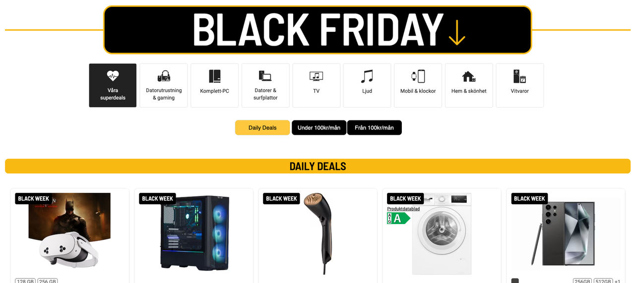 Black Friday har alltså till sist anlänt och trots att vi haft en uppsjö av fantastiska erbjudanden under de senaste veckorna är det ju egentligen just idag som är dagen vi alla väntat på. Inte bara tack vare nya erbjudande utan också för att vi alla snart kan andas ut lite efter ett par hektiska veckor!- Ta mig direkt till Kompletts Black Friday deals!Fram tills måndag kväll har ni fortfarande chansen att ta del av grymma erbjudanden på allt från TV-apparater, vitvaror, datorutrustning, komponenter, smartphones och nästintill allting däremellan hos Komplett. Black Week hos Komplett: - Över 1 000 produkter i vår Black Week-kampanj! - Upp till hela 60% rabatt! - Stort utbud av Komplett PC-datorer, datorkomponenter, smartphones, vitvaror och mycket mer. - Kampanjen pågår fram till måndag 2 december eller så länge lagret räcker!Har ni redan gjort era fynd för årets Black Friday-period? Berätta gärna i kommentarerna vad ni har införskaffat.Klicka här för nya Black Friday deals!