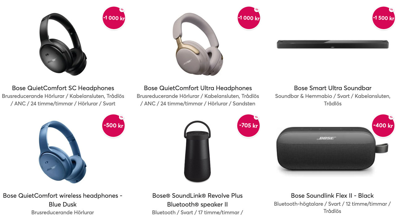Då är det snart dags att avrunda två galna veckor av Black Week-kampanjande och vi är precis lika trötta som ni är på rea-veckorna. Vi är redo för lite vanliga dagar och rent krasst fly all stress och brus!Vi kör därför nu en sista push på vår BOSE-kampanj där det inte minst finns flera kritikerrosade ANC-hörlurar som kan hjälpa oss att koppla bort och lugna neverna. Vårt lagersaldo har sinat lika snabbt som energin de senaste två veckorna men det går fortfarande att göra julklapps-kap på bland annat BOSE QuietComfort Ultra som höjts till skyarna av mängder av köpare på Webhallen med 5/5 i snittbetyg. Men det finns även riktigt fina kampanjpriser på andra ANC-lurar samt soundbars i både premium- och mellanklassen.- Ta mig till BOSE Cyber Monday-kampanj på Webhallen!Berätta gärna i kommentarerna ifall det är några av BOSE ljudprodukter du själv har erfarenhet av eller om det är några som står på önskelistan i år.