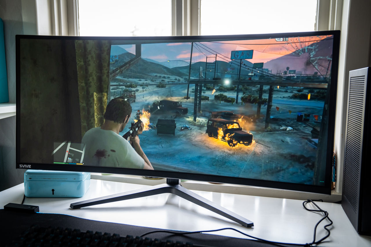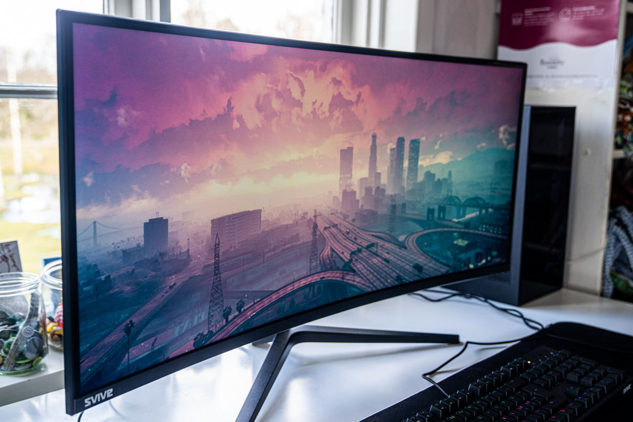 Sedan har vi ju den där scenen som dyker upp efter ett par singel-uppdrag där vi står och tittar ut över Los Santos för första gången och kameran sveper ut över staden. Mums!Andra liknande spel: Fortnite må sakna samma typer av biljakter men lite samma känsla där när vi landar uppe på en höjd och blickar ut över det kommande, och framförallt krympande, slagfältet.Undvik trasig grafik med bildsynkronisering Ofta är skärmar certifierade av antingen AMD (Freesync) eller Nvidia (G-Sync). I grunden rör det sig dock om VESA Adaptive Sync som är en del av DisplayPort-standarden. Det betyder att om skärmen stödjer det ena så stöds också det andra.I den här artikeln har vi använt oss av en välvd gamingskärm från Kompletts egna varumärke Svive. Filosofin bakom Svive är att du inte skall behöva tömma hela spargrisen för att ha råd med bra utrustning, oavsett om du sitter och spelar själv eller streamar. Skärmen i artikeln heter Svive 35" PYX 35D601 och kostar just nu prispressade 4995 kronor (gäller till och med 30/11 eller så långt lagret räcker).- Svive 35" PYX 35D601 - Ta mig till ännu fler Svive-prylarVilket spel skulle du vilja testa på en bred och välvd gamingskärm? Eller sitter du kanske inne på en titel som vi har missat?! Kommentera gärna vilket som är ditt favoritspel och om det kanske gör sig extra bra på en välvd skärm. :)