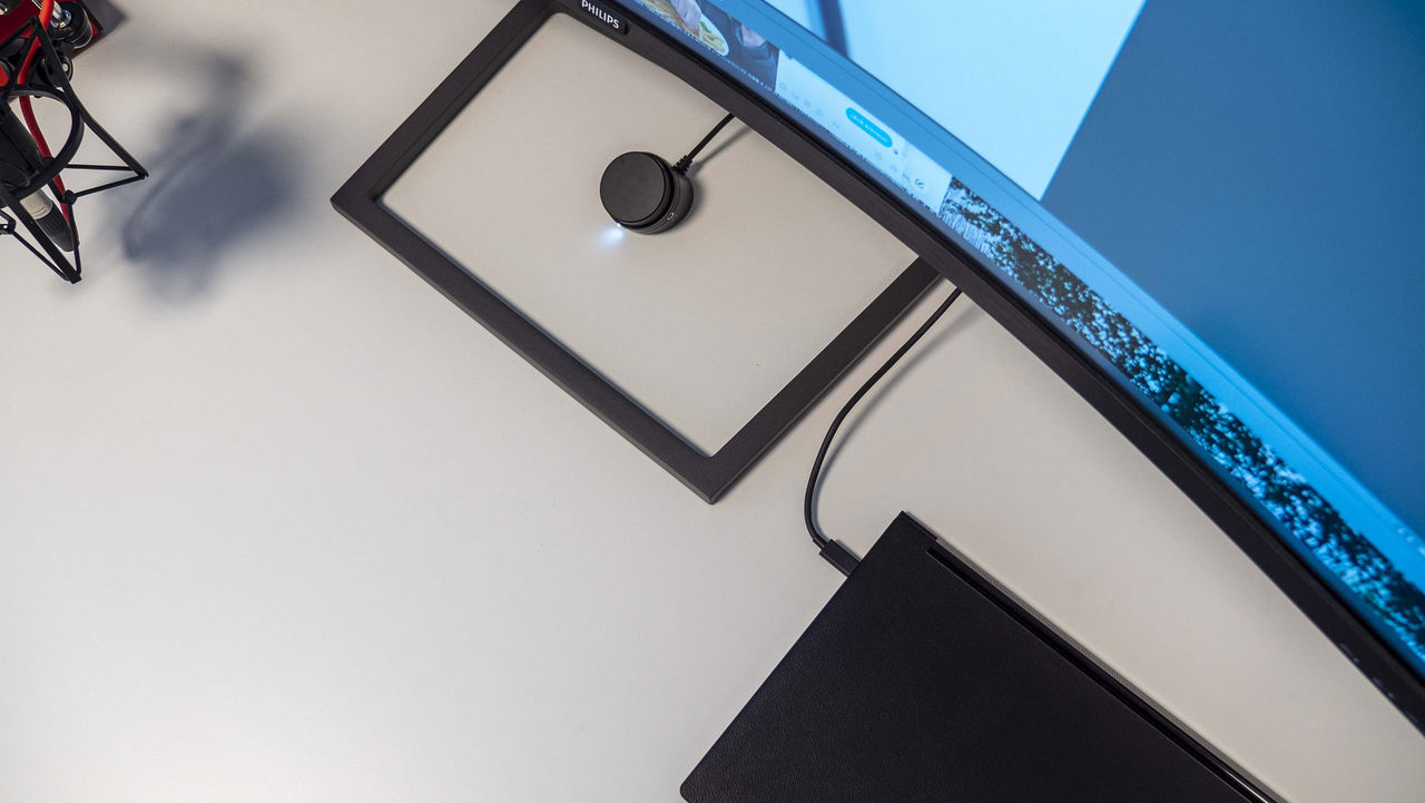Alla Intel Evo-certifierade datorer har stöd för Thunderbolt 4 vilket ger dig maximal bandbredd via en enda kabel. Här ser vi en Lenovo Yoga 9 med en Thunderbolt-kabel ansluten.