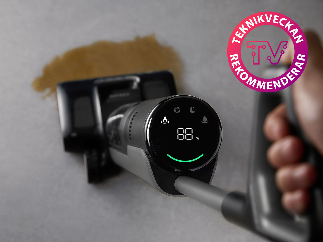Om du vill dammsuga och tvätta samtidigt är H12 Pro FlexReach svaret. Den kombinerar kraftfull sugförmåga (18 000 Pa) med dubbla roterande borstar som hanterar både damm och vätska utan att protestera. Efteråt rengör den sig själv i basstationen med 85 °C varmluft – så att mopphuvudena alltid är redo för nästa omgång. Det flexibla huvudet gör att du kommer in under låga möbler, och TangleCut-rullen förhindrar att hår fastnar. Med stor vattentank, enkel användning och självrengörande system är H12 Pro FlexReach kanske det närmaste man kommer en självtänkande golvstädare.
