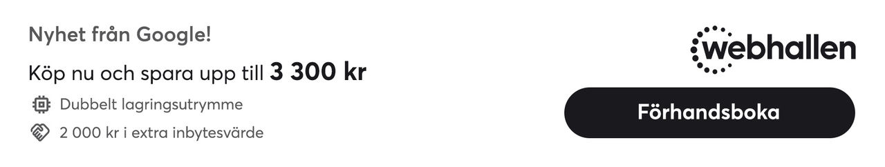 Hela denna artikel är en annons från WebhallenGoogle har presenterat sin nya serie av Pixel-lurar och vi är riktigt taggade! Några av alla höjdpunkter är: Gemini (AI), läckra skärmar, snabbare processorer och såklart ännu bättre kameror. Vi tror att en av de mest populära modellerna i Sverige kommer att bli Pixel 9 Pro XL.Därför ger vi alla våra kunder möjlighet till en riktigt schysst rabatt när de bokar sin Pixel 9 Pro XL hos oss!Ta mig till Webhallens erbjudande på Google Pixel 9 Pro XL!Just nu kör vi ett lanseringserbjudande på Pixel 9 Pro XL, där du får 256GB lagring till priset av 128GB. Dessutom har du möjligheten att byta in din gamla telefon för att maxa rabatten och spara upp till 3.300 kronor på din Pixel 9 Pro XL!