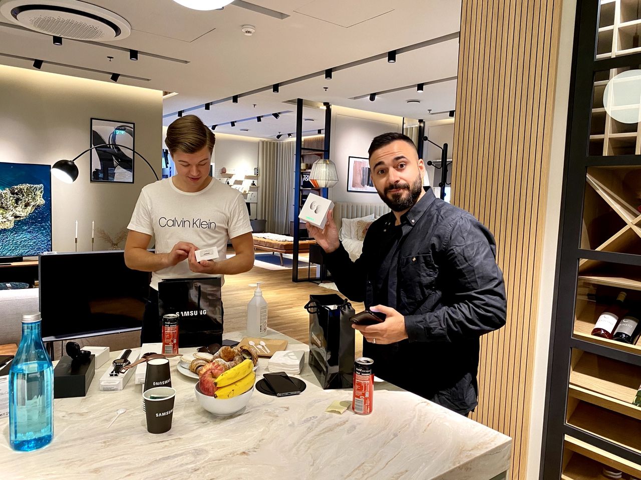 – Jag var lite skeptiskt till att de skulle sitta kvar i örat men har inte varit några problem alls säger Jawad. Dom sitter riktigt bra, nästan för bra att man blir lite öm om öronen efter ett par timmar. Det är nog de första lurarna som sitter kvar oavsett om jag lyssnar på något eller inte. Stort tack till Marcus och Jawad för att ni ville komma och kolla in Samsungs prylar! Mycket trevligt att hänga med er!