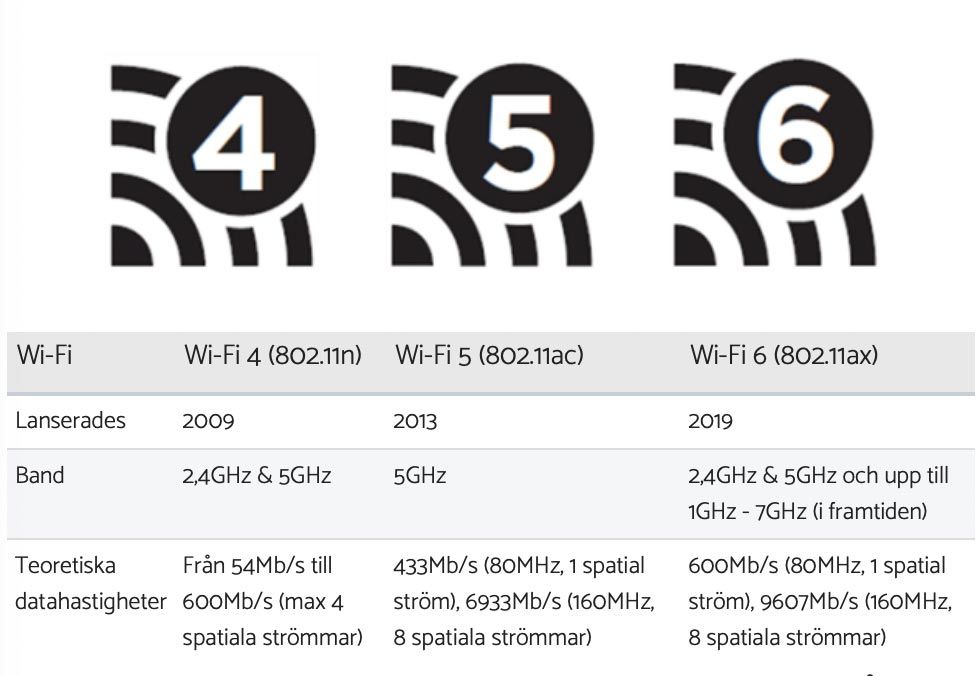 Det är en välkommen förändring för gemene konsument då det blir lite enklare att förstå och hålla reda på vilka produkter som har stöd för vilken generations Wi-Fi.Likt tidigare versioner av Wi-Fi så kommer även Wi-Fi 6 rullas ut i vågor. Den första vågens Wi-Fi 6 accesspunkter har redan hittat ut på marknaden medan den andra vågens acesspunkter och produkter förväntas dyka upp under 2021-2022.Vad är nytt med Wi-Fi 6?