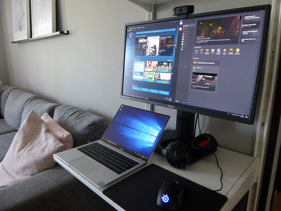 Det gör att trots den tunna designen hos Huawei Matebook X Pro så kan vi ansluta ytterligare kraftfull hårdvara för att kunna spela tunga speltitlar eller jobba med betydligt större bildskärmar. Allt via en och samma kontakt.