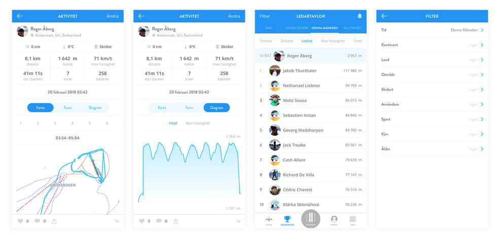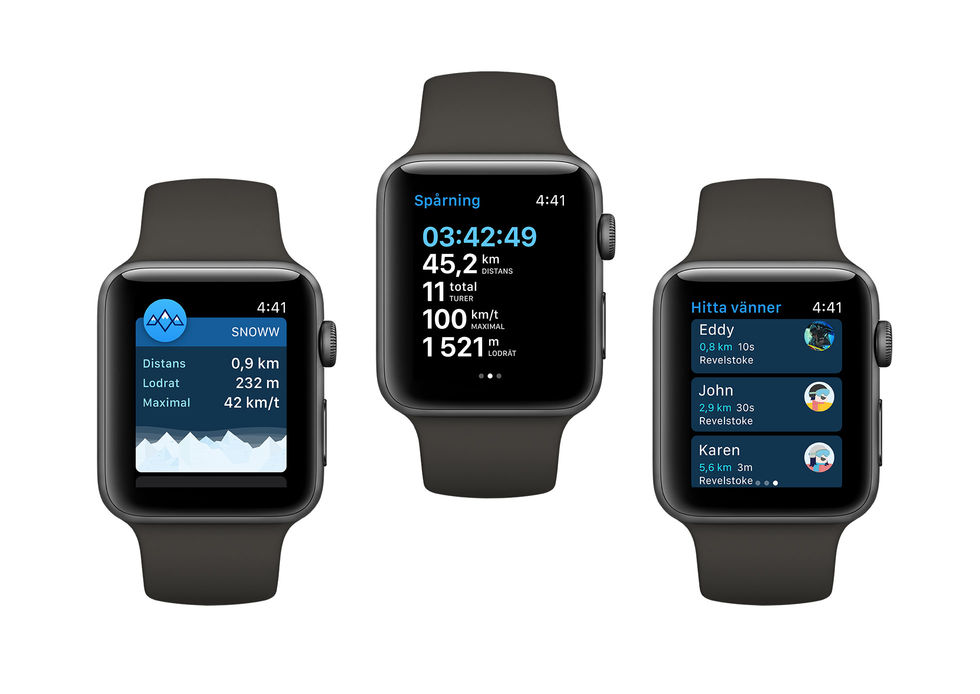 Snoww är verkligen gjort av folk som gillar skidåkning, Eddy har hängt mycket i pisterna. Man fattar också direkt att de vill att man ska ha roligt, när man sätter igång spårningen får man en skön nedräkning med ljud från typ Winter Games från 80-talet. Så vad är egentligen dealen med det här? Jo, lite ny hårdvara, närmare bestämt en barometrisk höjdmätare, i senaste versionen av Apple Watch tillsammans med saker i watchOS 4.2 gör nu livet enklare för utvecklare av snöåkningappar. För oss användare betyder det exaktare data och att det blir ännu härligare att hålla koll på vad man gör på berget. Man har kunnat göra mycket av det man kan göra i dag tidigare, Snoww finns dessutom som iPhone-app, men nu får man alltså ännu bättre mätning. Apple säger att man har gjort en herrans massa skidåkning för att testa så att det funkar, och inte bara med proffs. Dags att prova om det stämmer!När appen är igång så mäter den aktiv tid, fallhöjd, distans och turen. Man försöker även att mäta hastigheten man har haft men detta uppfattade vi som lite buggigt. Olika personer i gänget som åkte fick olika resultat på samma åkning, så denna skulle jag ta med en nypa salt. För att inte dra för mycket batteri så kollar man gps-status varannan sekund vilket nog är en av anledningen till skillnaderna. Utvecklarna får också blanda teknisk data från klockan med kartdata från liftsystemet så just den delen är ingen exakt verksamhet. Övriga data stämde mycket bra mellan mig och resten i gänget och det är helt enkelt roligt att se hur mycket man åker. När appen börjar känna av att man står still eller rör sig uppåt igen så skickar den en notis med info om det senaste åket. Vilket är smart eftersom man då borde befinna sig i liften. Så mycket mer med detta är det inte på fjällen förutom en riktigt härligt kompisfunktion. När man befinner sig i ett skidsystem är det inte ovanligt att man tappar bort varandra och det där med att ringa och messa varandra är inte optimalt. Vem svarar när man åker liksom. Här kan man istället i appen se vart folk befinner sig (om de aktivt använder appen så klart) och kan jaga ifatt dem. Smart! För detta behöver man inte heller Apple Watch, appen för iPhone eller Android räcker. Det roliga när man kommer hem är all info man får om sig själv - och om andra. Det finns topplistor kring det mesta och det går enkelt att filtrera bort trams, man kan till exempel kolla vem som är mest aktivt precis där man är eller av ens kompisar. Man kan kolla på hur exakt man har åkt och studera både sig själv och sina kompisar. Självklart får man också en aktivitetsström så att man ser vad ens kompisar gör även om de inte är på samma ställe. Ibland vill man ju bara vara sig själv för en sekund och då går det att göra sin profil eller bara enstaka aktiviteter privata. Snoww är en väldigt social app, så det dödar ju det roliga lite, men man behöver ju inte dela allt här i livet. Är skillnaden så stor med senaste Apple Watch jämfört med att bara ha telefonen i fickan. Nja, egentligen inte. Mycket av datan går att få ändå i ok form men ok är inte ok i längden. På samma sätt som att det är självklart att kunna tracka när man springer är det numera självklart att man kan dra ut i backen och få den aktiviteten på sina ringar på klockan. Förutom exaktare data är ju det stora här att man får ut vettiga kalorital och alltså kan använda skidåkningen som vilken träning som helst. Just ja, det fungerar såklart även med snowboard. Är det värt att uppgradera för detta? Nja, men då ska du åka mycket skidor. Väldigt mycket skidor. Just nu är det främst roligt för oss som råkar ha den senaste versionen att få lite roligare data och räkna kalorier. Och behöver man det sista kanske det får folk att köra några åk till istället för att sitta i baren mellan lunch och after ski...Förutom Snoww släpps även i dag apparna Slopes, Squaw Valley, Snocru och Ski Tracks.