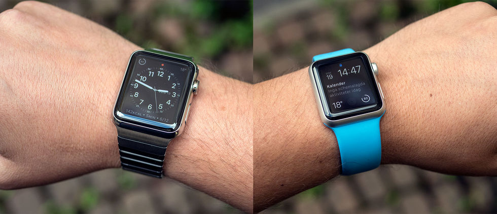 Det är något stort med att vara liten Apple Watch finns i två storlekar, 38 mm och 42 mm, och i tre olika versioner. Även den större storleken av Apple Watch är mindre än alla Android Wear på marknaden och den mindre storleken är garanterat mindre än allt förutom Pebble. Förutom Pebble är det här den första smarta klockan som fungerar för kvinnor och män med mindre handleder och alla vi andra som inte går igång på dykarklockestorleken hos de flesta smarta klockor där ute. Jag har använt båda storlekarna och jag gillar 42 millimeter lite mer eftersom den storleken matchar en vanlig klocka för mina armar. Jag är väl ganska medium om armarna så som sagt, är du smal om handlederna, välj 38 mm. Storleksskillnaden betyder också den enda egentliga skillnaden tekniskt bland alla modeller: storleken på skärmen. 42 mm är så klart tydligare eftersom den är större men jag tycker aldrig att 38 mm blev för pillig eller för liten. Välj med andra ord en storlek som passar din arm före behovet av skärm. I finishgrenen vinner Apple över allt just nu, även när det kommer till den billigare sportversionen. Jämfört med alla andra smarta klockor på marknaden är Apple Watch en betydligt snyggare och välbyggd historia. Det finns som sagt tre versioner där sportversionen är den billigaste. Här är det aluminium som gäller i kroppen av klockan och min favorit är helt klart den mörkgrå versionen. Ingen av Sportversionerna känns billiga men de känns inte heller exklusiva. Helt ok med andra ord. De är lätta och sportarmbandet sitter faktiskt överraskande skönt på armen! Sportversionen saknar det safirglas som de andra två har men jag har inte lyckats repa eller märka något på glaset så det är ingen anledning att byta upp sig. Den vanliga versionen är betydligt mer klocklik med sin stålfinish och jag vågar påstå att ingen kommer att bli speciellt besviken på denna. Den är av naturliga skäl lite tyngre men det kräver man nästan eftersom den ska känna lite mer solid med stål än med aluminium. Med metallarmband känns denna tung och härlig som en riktig stålklocka. När jag använde sportversionen ville jag gärna använda en "riktig" klocka då och då, det behovet finns inte med stålversionen. Jag skulle nog vilja gå så långt som att säga att stålversionen med ett snyggt armband duger gott till de som använder en vanlig klocka i dag som ett smycke. LG har en grym funktion med sina klockor där OLED-skärmen visas sin styrka, de går in i ett sleepläge där visare på klockan fortfarande syns vilket gör illusionen av en vanlig klocka bättre. Detta kan jag verkligen sakna med Apple Watch, när skärmen är släckt är det en släckt skärm och inget annat och hur fint allt runt omkring än är så blir det inte så supersexigt. Guldversionerna orkar jag nästan inte prata om. Visst är de vackra men prislapparna är så larviga att jag inte vet vart jag ska ta vägen. På klockans undersida finns lite sensorer, främst pulsmätaren, och på klockans höger eller vänstersida, hur man nu väljer att bära den, finns en krona och en knapp som tar en till ens kontakter. Apple benämner kronan hela tiden som "digital krona" men den har en riktigt skön analog känsla, även om den styr digitala saker i klockan. Man använder den dock inte så mycket som man kanske borde, eller som Apple vill att man ska göra, eftersom man är så van vid att röra vid skärmar. Armbanden minst lika viktiga Minst lika mycket tid som på själva klockan har Apple lagt ner på armbanden, kanske mer, och det märks. Alla armband förutom möjligen det vanliga läderarmbandet har några specifika egenheter. Låsningen på sportarmbandet är underbar i sin enkelhet, köper du ett metallarmband rekommenderar jag faktiskt dig att köpa detta också som komplement. Den milanesiska och läderloopen är fantastiska med sina magnetlås. Länkarmbandet där alla länkar har egna små lås som gör att man när som helst kan lägga till och ta bort länkar är helt enkelt fantastiskt. För den som inte vill betala för Apples armband finns det redan en hög med tredjepartsarmband. Det fina med Apple Watch är att det är superenkelt att just byta armband, med två enkla tryck lossar man det man har på och så sätter man enkelt in det nya. Det är med andra ord upplagt för att kunna ha olika armband olika dagar och till olika tillfällen.Så hur sammanfattar vi hårdvaran? Sportversionen är för dig som inte vill punga ut med riktigt lika mycket pengar och som kommer att använda den främst som en aktivitetspryl. Den vanliga versionen är för dig som vill ha något som mer liknar en "riktig" klocka och här har Apple gjort ett riktigt bra jobb med att få klockkänsla på själva hårdvaran. Guldversionen är för dig med alldeles för mycket pengar. Det viktigaste på klockan är urtavlan Precis som på en vanlig klocka är urtavlan det viktigaste även på en smart klocka och urtavlorna är både en styrka och en svaghet på Apple Watch. Svagheten är att det bara finns tio stycken att välja mellan och tredjepartsutvecklare gör sig inte besvär här. Styrkan är att de går att ställa in på rätt många sätt och att detta blir ännu bättre med watchOS 2 då tredjepartstillverkare kan komma in och visa information här. Du kan med andra ord få vädret från en lokal leverantör istället för Apple eller se hur mycket laddning det är i din elbil bara genom att vrida lite på armen. Varje urtavla har nämligen ett gäng olika ytor som man kan ställa in själv efter vad man önskar se. Det kan vara kalendern, vädret, batteriet och inom en snar framtid alltså även hur mycket ström det är i elbilen eller om det är låst där hemma. Eftersom det är urtavlan som är det man ser absolut mest är detta viktigare än man kanske tänker och fixar apptillverkarna stöd för detta kan det bli riktigt mäktigt. Notiser, notiser, notiser Förutom att vi
