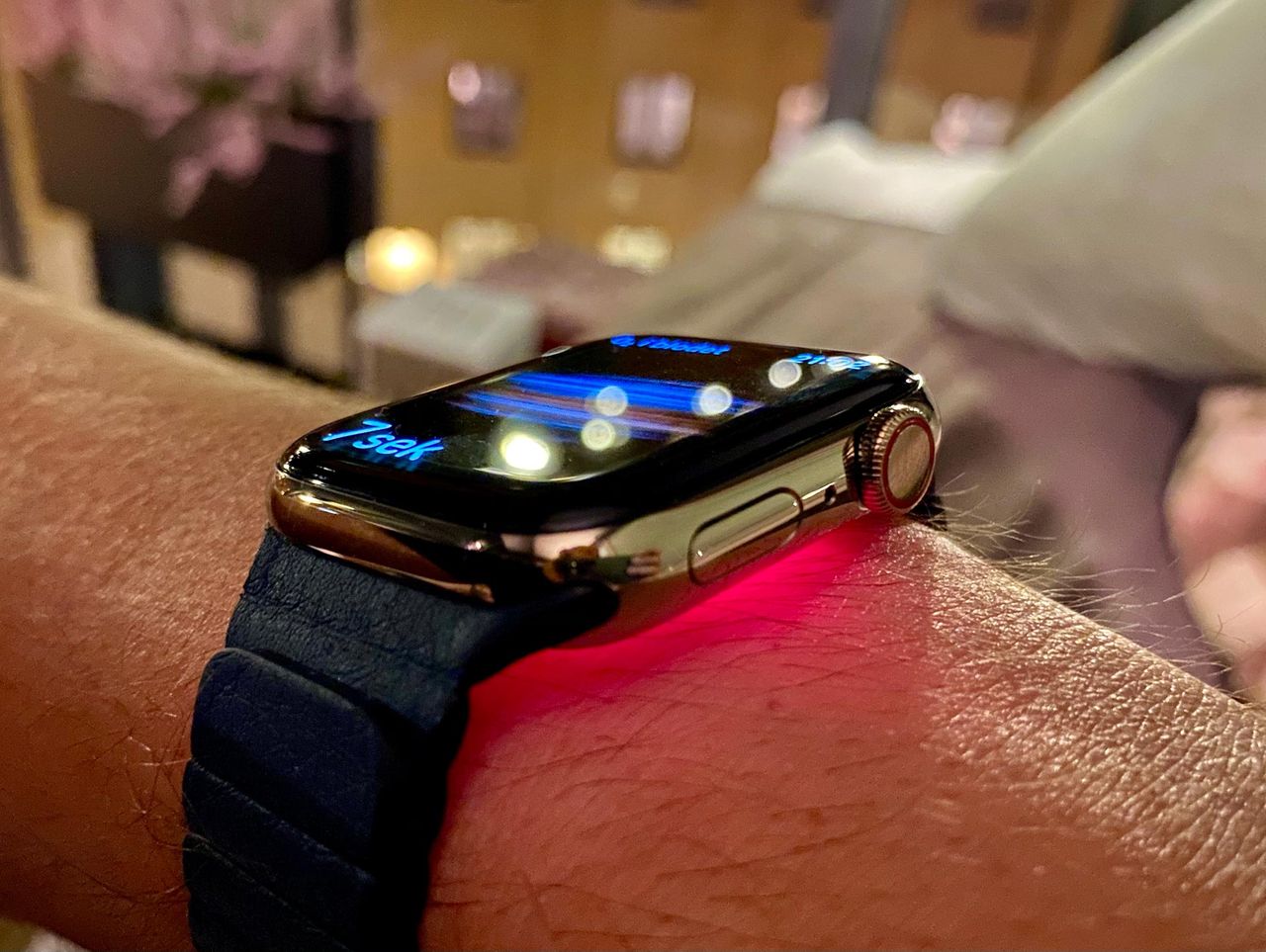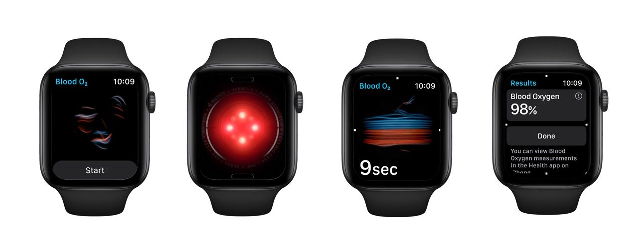 EKG på Apple Watch är en medicinsk mätning och därför har Apple fått ansöka om tillstånd hos de lokala medicinska myndigheterna runt om i världen, vilket gör att det inte finns överallt och det tog ett tag innan den funktionen kom till Europa. Att mäta syremättnaden i blodet är tydligen inte detta eftersom den finns tillgänglig över hela världen och här i Europa från start, men det ska inte användas som ett medicinskt instrument utan för "välmående" eller well being som det heter på amerikanska. Hur som helst är det en cool funktion som med röda lampor under klockan mäter syremättnaden i blodet. Det lyser rejält och funktionen är avstängd när man har teaterläget påslaget. Man kan så klart mäta mättnaden manuellt i blodet men klockan gör också mätningar i bakgrunden då och då, även när man sover. Men vad ska man med det till? Även Apple är faktiskt lite luddiga på den här punkten, det finns egentligen ingen direkt vinst med att mäta syremättnaden för en normal person en normal onsdag. Däremot är det något som kan vara intressant under längre tid och vara en intressant beståndsdel under träning.