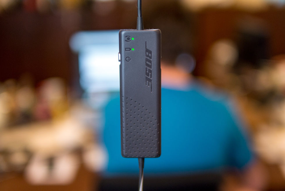 Men det nya med QC20 är så klart noise cancelling som gör att omvärlden försvinner. För att lösa detta finns ett gäng mikrofoner på lurarna och enkelt förklarat kollar lurarna av omvärlden och erbjuder istället örat något som "tar bort" ljudet från omgivningen. Eller tar bort är en lögn, för det blir inte tyst på riktigt.Men det känns som att det är tyst. När jag visar de här lurarna för en person som inte har testat dem ber jag dem alltid sätta in lurarna med noise cancellation av och musik av. Det är faktiskt ett nöje att se deras miner när man slår på noise cancellation och omvärlden försvinner. Lite, lite av omvärlden finns så klart kvar när man inte har musik på, men det behövs inte hög volym för att allt i omvärlden ska vara borta. Det är verkligen en speciell känsla att sitta på tunnelbanan med miljoner skrikande ungar runt sig och kunna lyssna på detaljer i musiken utan att kräma på. Själva ljudet då? Är det värt 2890 kronor? Nej, inte utan noise cancelling, men tillsammans blir det faktiskt det. Jag gillar verkligen ljudbilden men är du ute efter det där helt obehandlade ljudet kanske de inte är något för dig men alla andra lär bli mer än nöjda. Jag köpte mina MIE2, alltså versionen utan noise cancelling, för 1000 kronor och det är de värda. Du får alltså betala ungefär 1800 kronor för noise cancelling.I början vid sladden sitter en liten klump som innehåller ett batteri och lite teknik för allt det där magiska som händer. Batteri ja, den måste laddas och det är så klart en nackdel, men lurarna fungerar även utan ström så helt utan musik blir du aldrig. Laddar gör man med USB och Bose själva säger "upp till 16 timmars speltid". Jag brukar ladda varannan, var tredje dag och innan resor för att vara på den säkra sidan och då har de aldrig tagit slut.Klumpen är faktiskt inte så irriterande som man skulle kunna tro. Den är tillräckligt liten och framförallt platt för att hålla sig borta. Självklart hade man helst varit utan den men jag kan lätt leva med den. På klumpen finns en på/av-knapp och två lampor som visar att den är på och om noise cancelling är på eller inte. På fjärrkontrollen hittar man lite olika knappar beroende på om man har iPhone-versionen eller inte. Men en knapp finns på båda och är riktigt cool - aware-knappen. Klickar man på denna stängs noise cancelling av och istället förstärker lurarna vissa ljud - främst röster. Detta är briljant om man sitter på tåget och meddelanden börjar ropas ut. Man måste stänga av musiken för att verkligen höra och framförallt för att kunna föra samtal. Jag satt på krogen med en kompis i veckan och det var rejält med ljud runt omkring oss, riktigt störande när vi försökte snacka. Jag var så klart tvungen att testa lurarna, satte på mig dem utan musik och slog på aware. Nu försvann en hel del av kringljudet och jag hörde min vän betydligt bättre - riktigt coolt. De här lurarna må vara första generationen smålurar med noise cancelling från Bose men de är tillräckligt bra för att jag skulle kunna slå till. Men 2890 kronor? Är det värt det? Du ska helt klart vara sugen på att stänga av omvärlden. Men när man väl har vant sig är det rakt ut plågsamt att använda andra lurar på exempelvis tunnelbanan - det spelar ju ingen roll hur fantastiska de är eftersom ljudet blandas med de där skrikande ungarna som alltid väljer just min vagn.