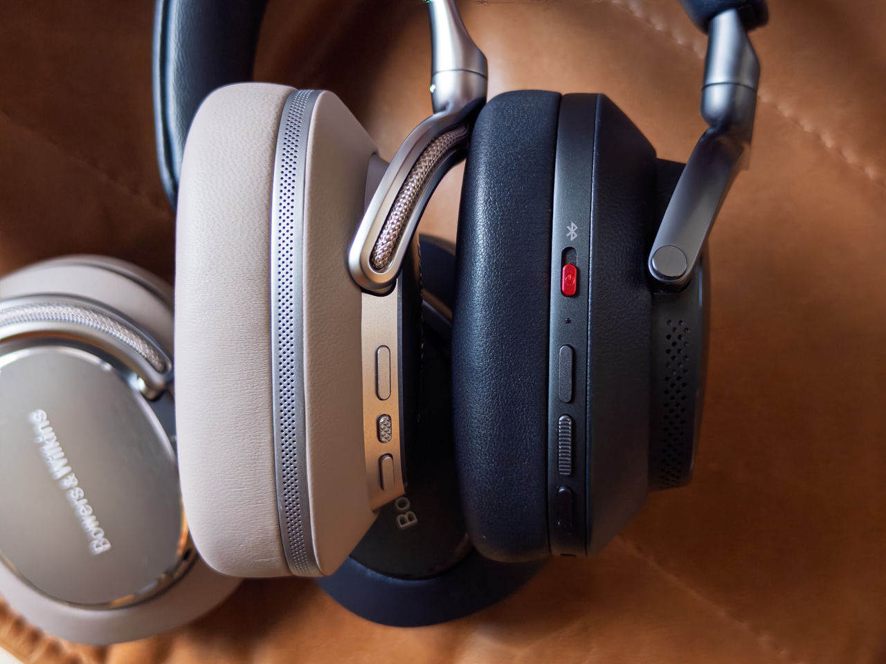 Bowers & Wilkins svävar inte iväg med något helt nytt designmässigt denna generation, det handlar egentligen mest om att göra någonting bra lite bättre. Kuddarna och huvudbygeln är täckta i nappaläder och resterande delar är aluminium. I framtiden ska det även gå att byta öronkuddarna och huvudbygeln för att ge hörlurarna längre livslängd. Hörlurarna har också fått ett lite smalare fotavtryck så de inte riktigt sticker ut lika långt från huvudet. Det gillar vi.Man har dock även valt att flytta knapparna bort från örat och ut på metalldelen, det är en förändring jag inte riktigt är ett så stort fan av. Jag tror inte heller att det handlar om en vanesak, de nya knapparna sticker nämligen inte ut särskilt mycket och kan bli svåra att hitta snabbt på huvudet.Störig ny knapp-placering (nya till vänster).Mycket annat är sig lik föregångaren. Komforten är fortfarande på topp och jag kan bära hörlurarna i timmar utan något obehag, trots mina lite större öron. Batteritiden ligger kvar på samma 30 timmar, och en laddning på 15 minuter ska ge oss sju timmars lyssning.